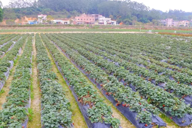 花海前方的万丰草莓园