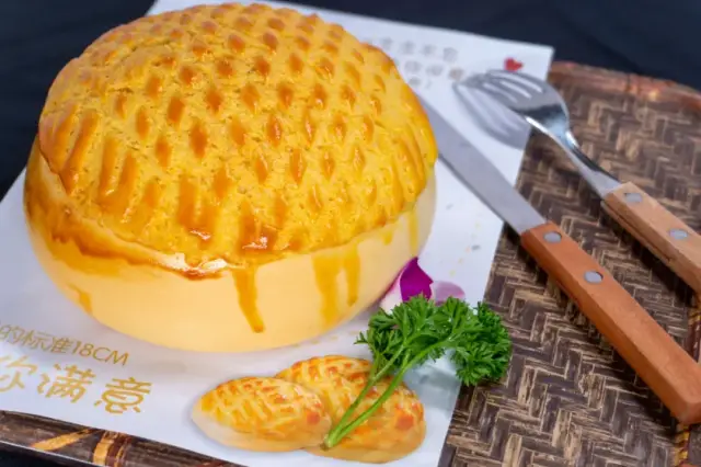 表面金黄、凹凸的脆皮状似菠萝,