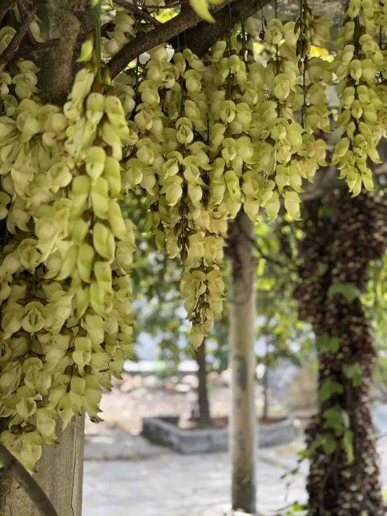 据了解,这些禾雀花生长在公坑寺内的野生藤蔓之上,每年三月至四月间绽放,因形似禾雀而得名。禾雀花盛开时如振翅欲飞,含苞时则如雏鸟待哺,十分有趣。