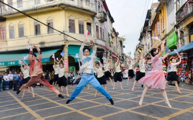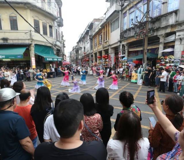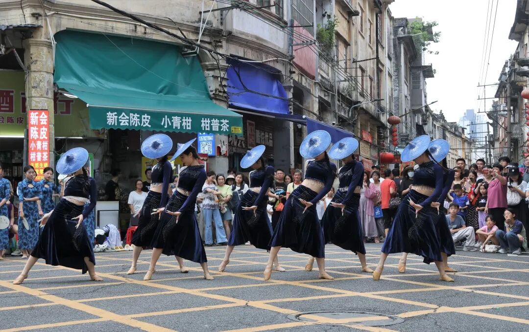 每月邀请本地艺术团体、非遗传承人、戏剧表演者等,在墟街街头巷尾进行传统戏曲、舞蹈、音乐等表演,重现江门的历史风情。