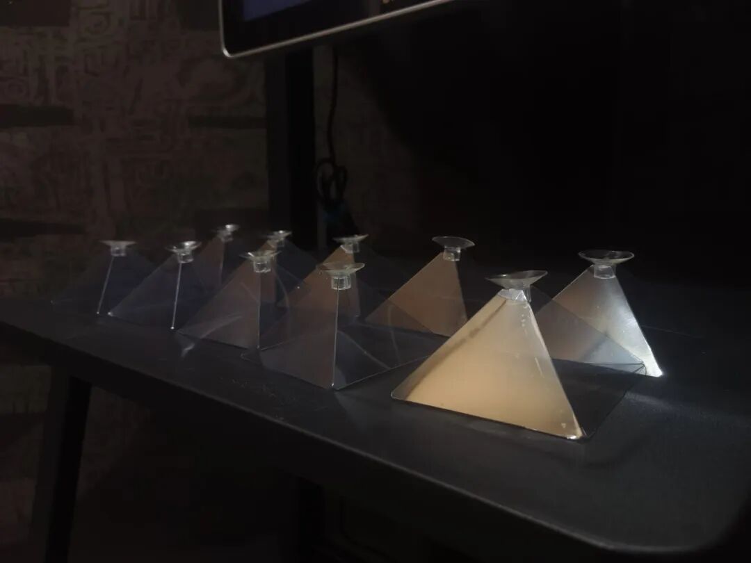 展览现场将放置3D投影互动道具,观众可在微信视频号与抖音搜索【江门市博物馆】分享的展览互动视频,配合使用道具,让甲骨文字“动起来”!