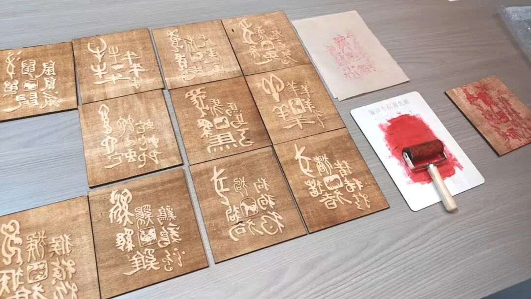 展览内设有甲骨文十二生肖立牌,中央互动区域将放置生肖版画拓印道具,欢迎前来与自己的生肖(甲骨文版)打卡,参与互动还可获得甲骨文生肖印章!