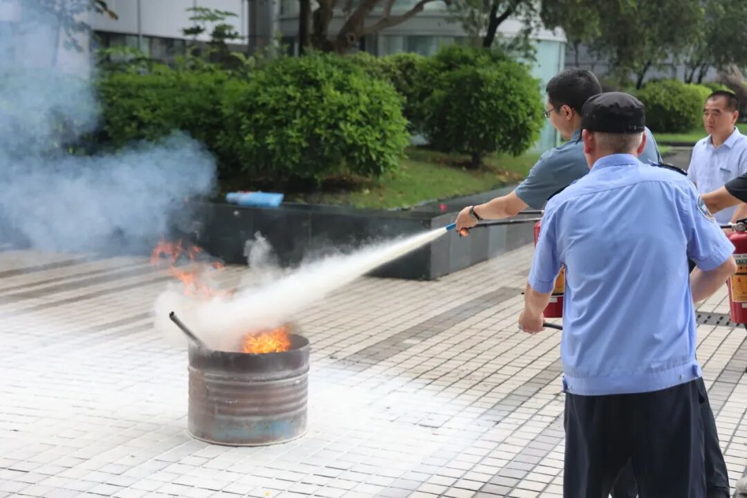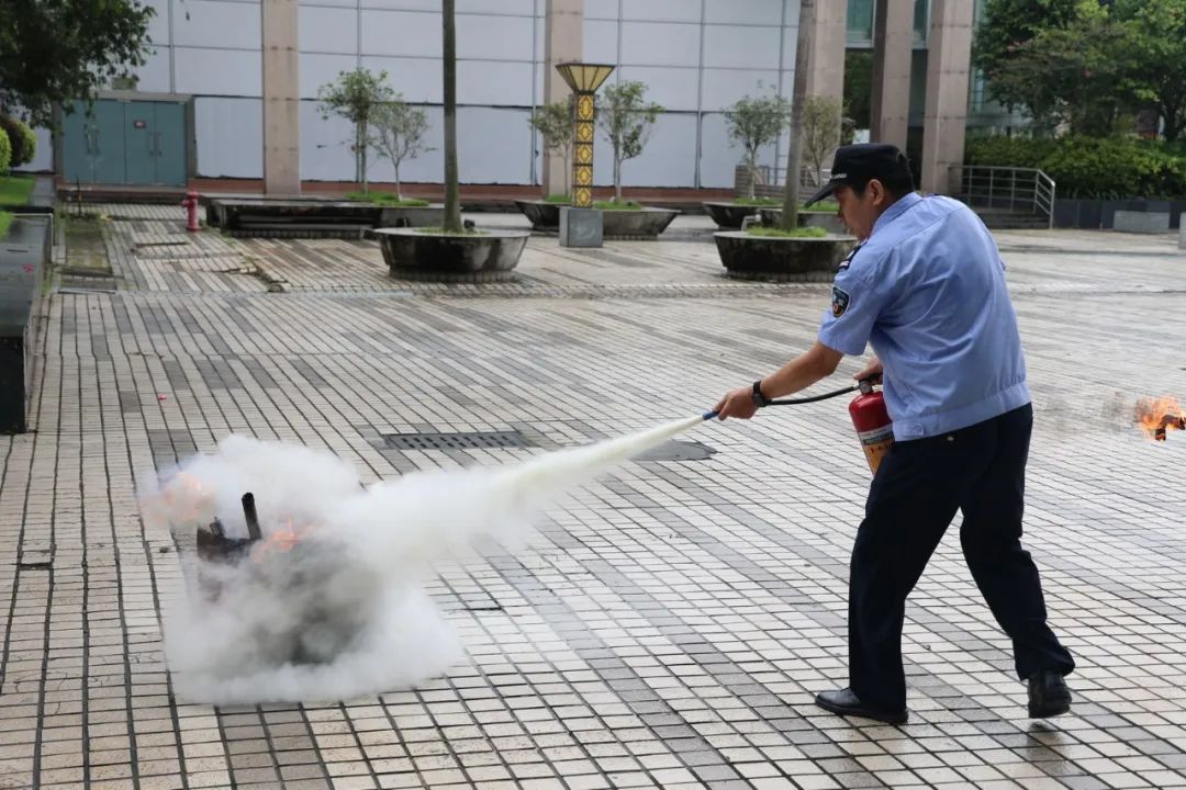 培训中心老师向参与活动人员现场讲解正确使用简易消防器材,就如何正确使用手提式灭火器模拟喷灭正在燃烧的火盆,并让大家轮流操作着手提式灭火器,亲身体验了灭火的过程,能熟悉掌握手提式灭火器的使用方法。