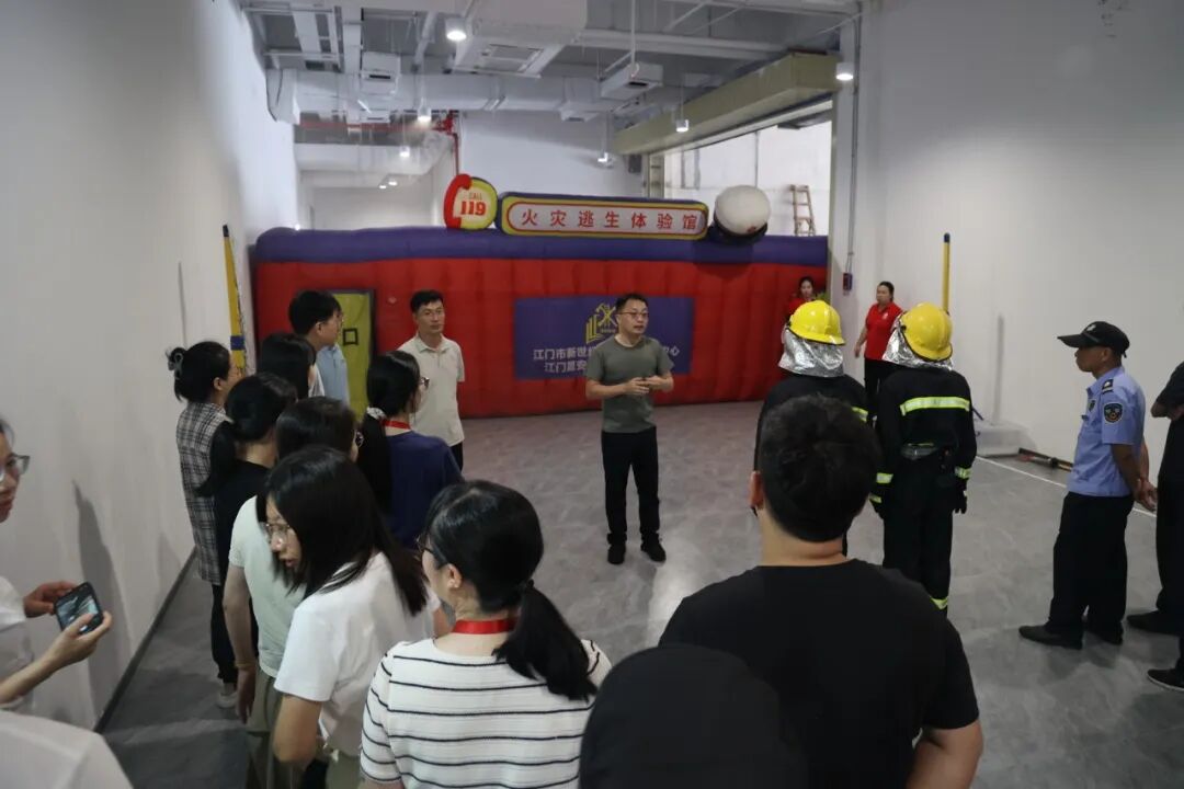 6月30日上午,江门市博物馆及物业公司工作人员70余人在侨博馆新馆开展消防安全知识培训、消防安全应急疏散演练、逃生体验屋和模拟灭火操作演练,邀请江门市新世纪安全教育培训中心进行现场培训。