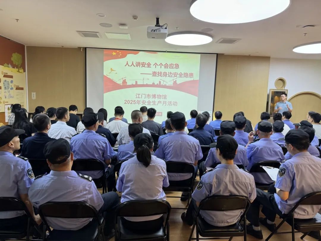 2025年6月是第二十四个“安全生产月”,主题是“人人讲安全、个个会应急——查找身边安全隐患”。为深入贯彻落实“全国安全生产月”活动精神,避免和最大限度地减少安全事故的发生,确保博物馆内文物及人员生命财产安全,提高防灾减灾救灾能力,加强消防安全工作宣传教育,强化安全的重要性,增强责任意识,并能深入了解消防疏散知识,掌握基本消防安全知识,具备自救互救的能力,提高突发事件应急处置能力,能有组织、迅速地引导观众安全、快速地疏散,学会正确使用灭火器以及掌握逃生的方法,江门市博物馆组织开展2025年安全生产月活动。