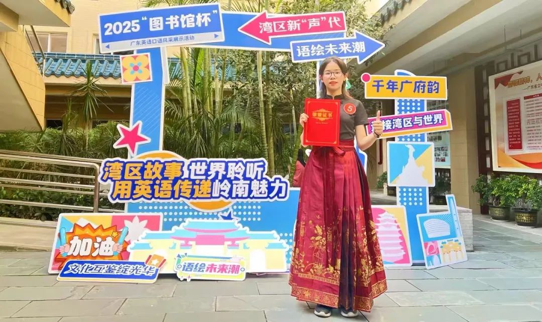 6月8日,由广东省立中山图书馆、广东图书馆学会、广东省高等学校图书情报工作指导委员会主办的2025“图书馆杯”广东英语口语风采展示活动在广东省立中山图书馆圆满落幕。自3月启动以来,江门市图书馆积极组织筹备赛事,广泛动员读者参与,成功推动本地读者融入这场以湾区文化传播为核心的语言盛会,彰显了地市图书馆在推动文化交流中的桥梁作用 ,获评“推广之星”荣誉;江门市图书馆读者何晓玥凭借扎实的英语素养与现场表现力,荣膺 “语言之星”称号。