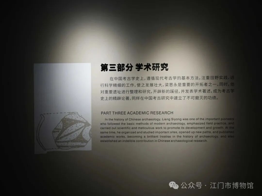 随后,江门市博物馆讲解员引导嘉宾参观展览。通过历史照片、珍贵文物与文献手稿的串联,梁思永先生为中国考古事业鞠躬尽瘁的一生跃然眼前——从田野调查的筚路蓝缕,到学术研究的皓首穷经,每一件展品都诉说着这位巨擘的坚守与奉献。