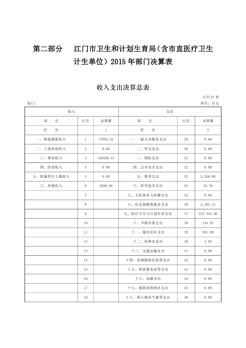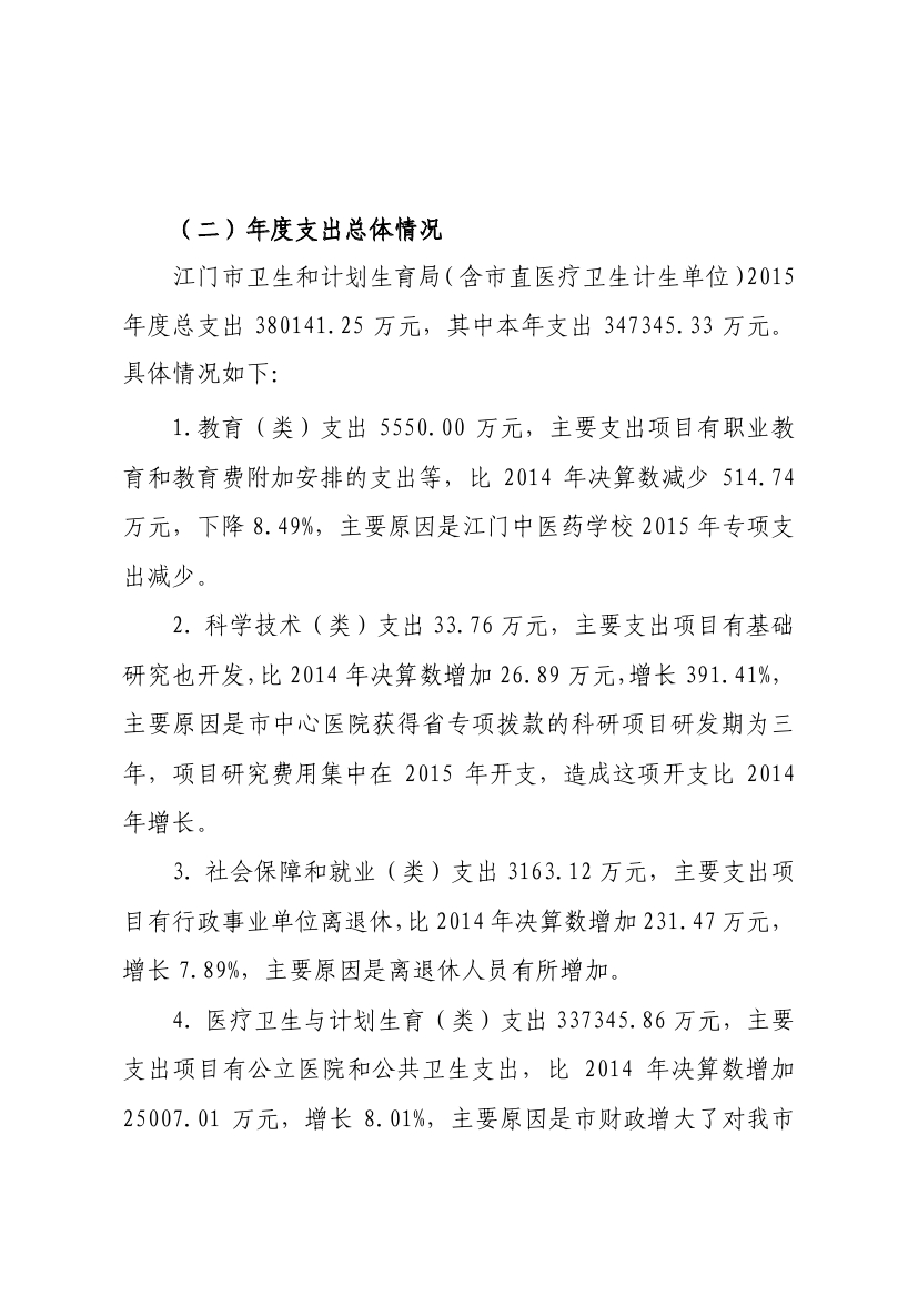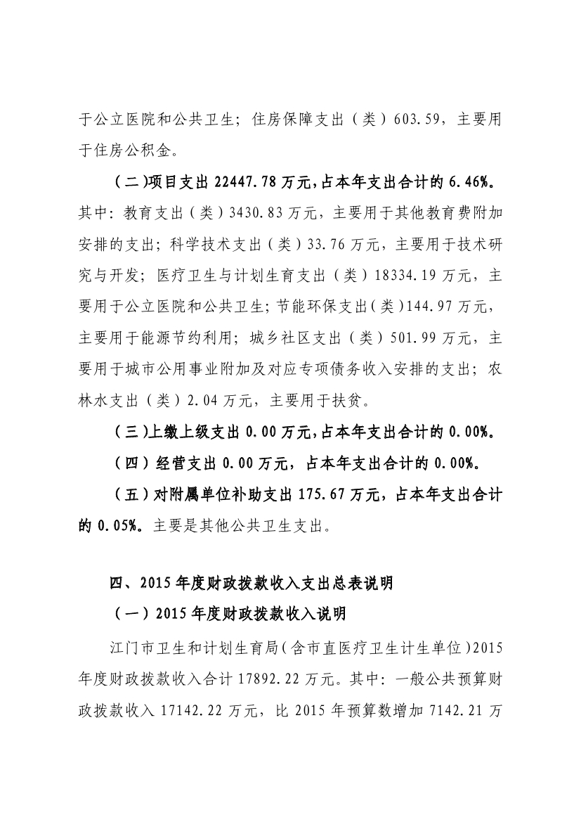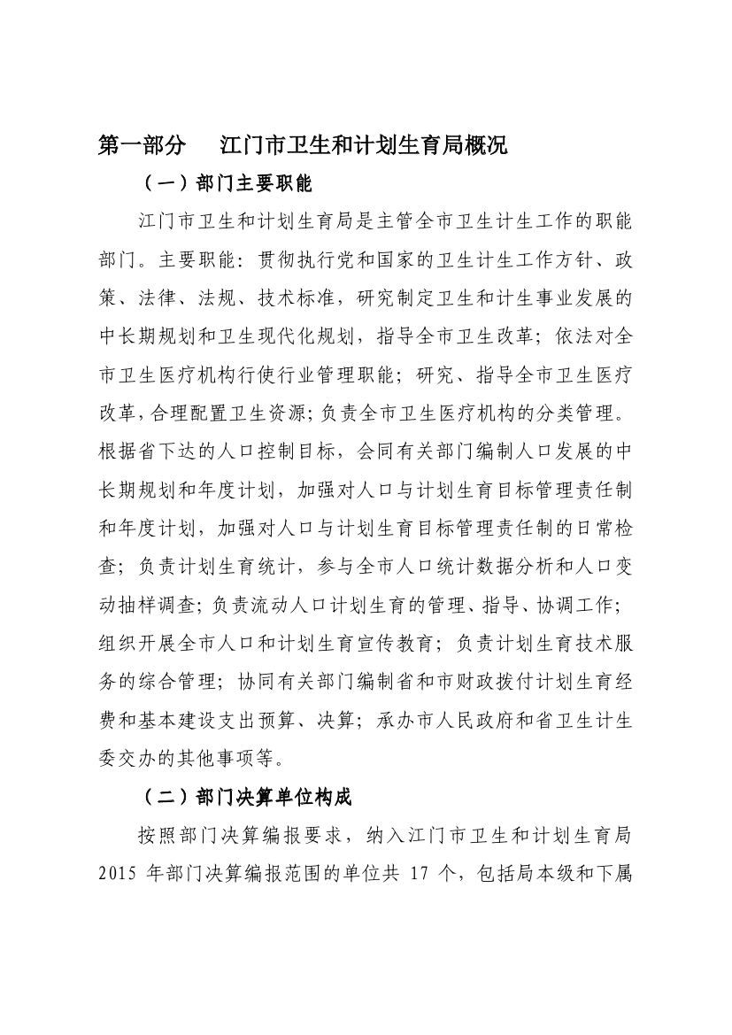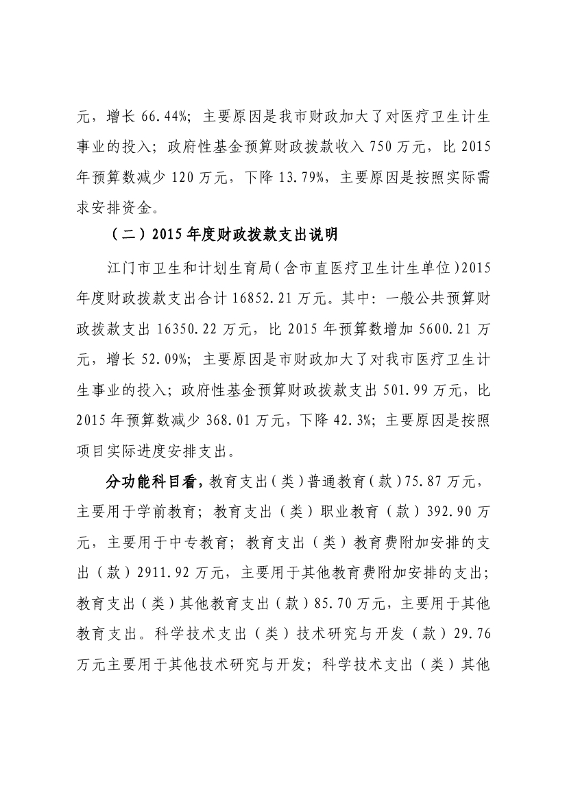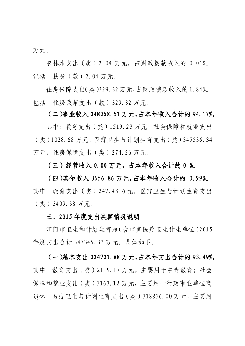 江门市卫生和计划生育局(含市直医疗卫生计生单位)2015年度部门决算公开