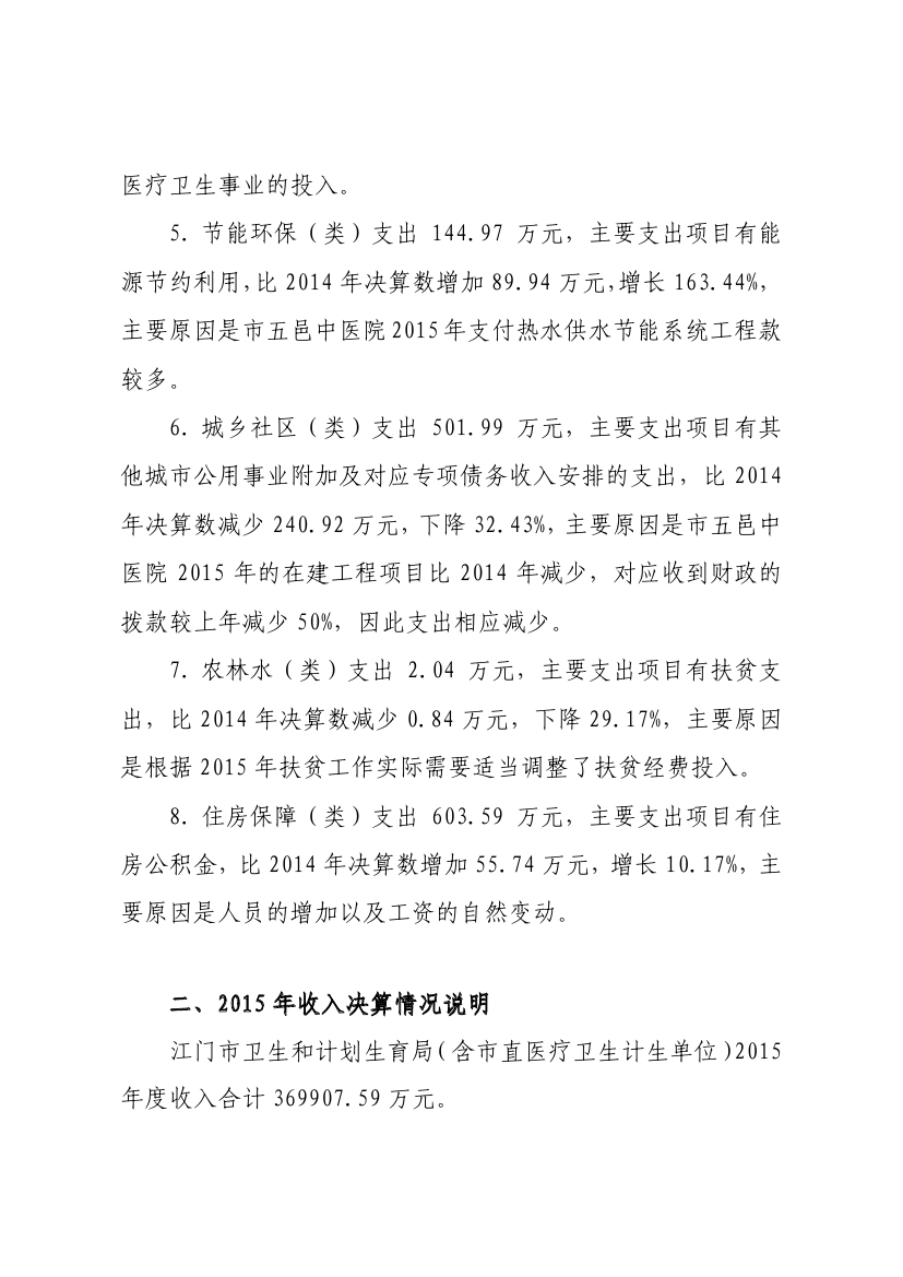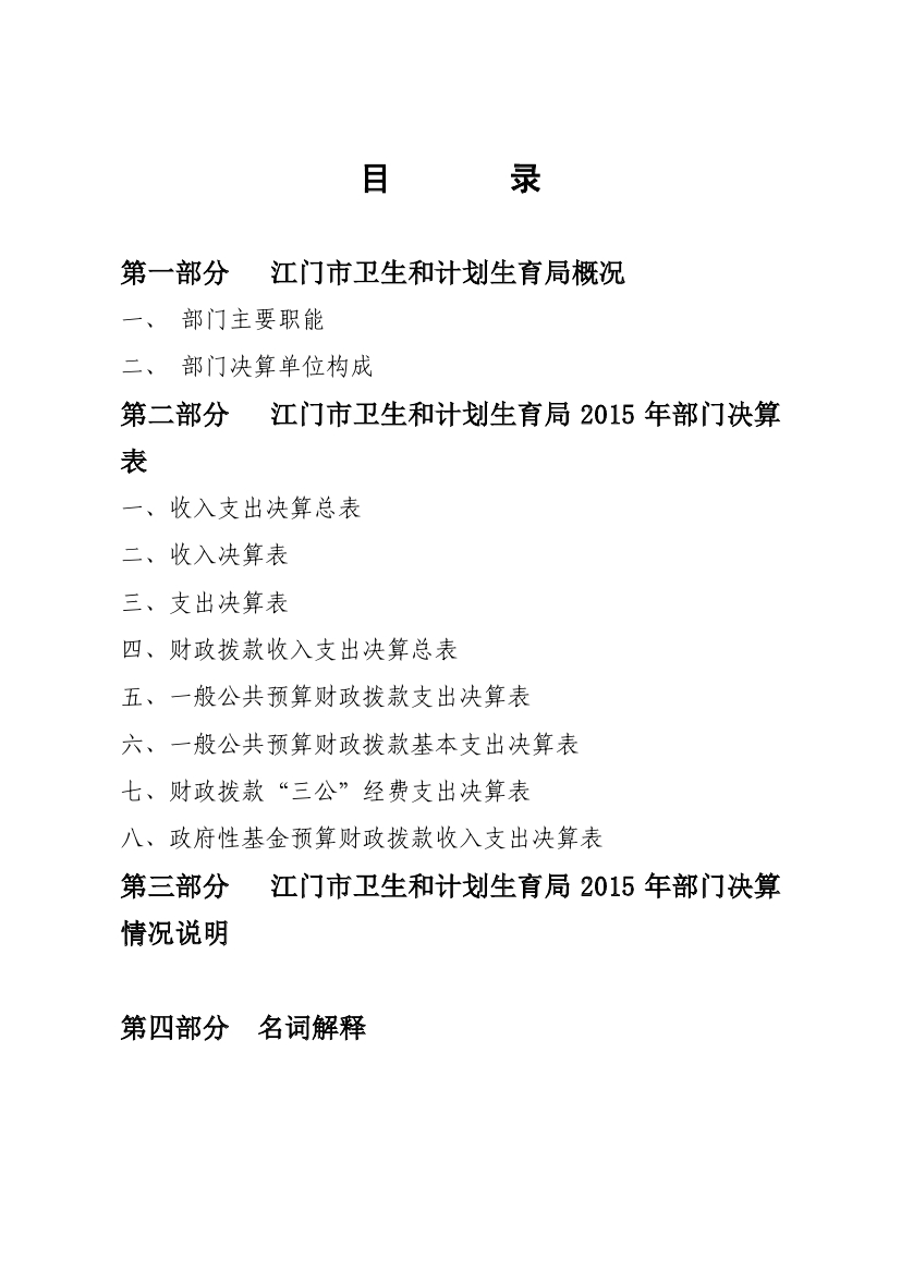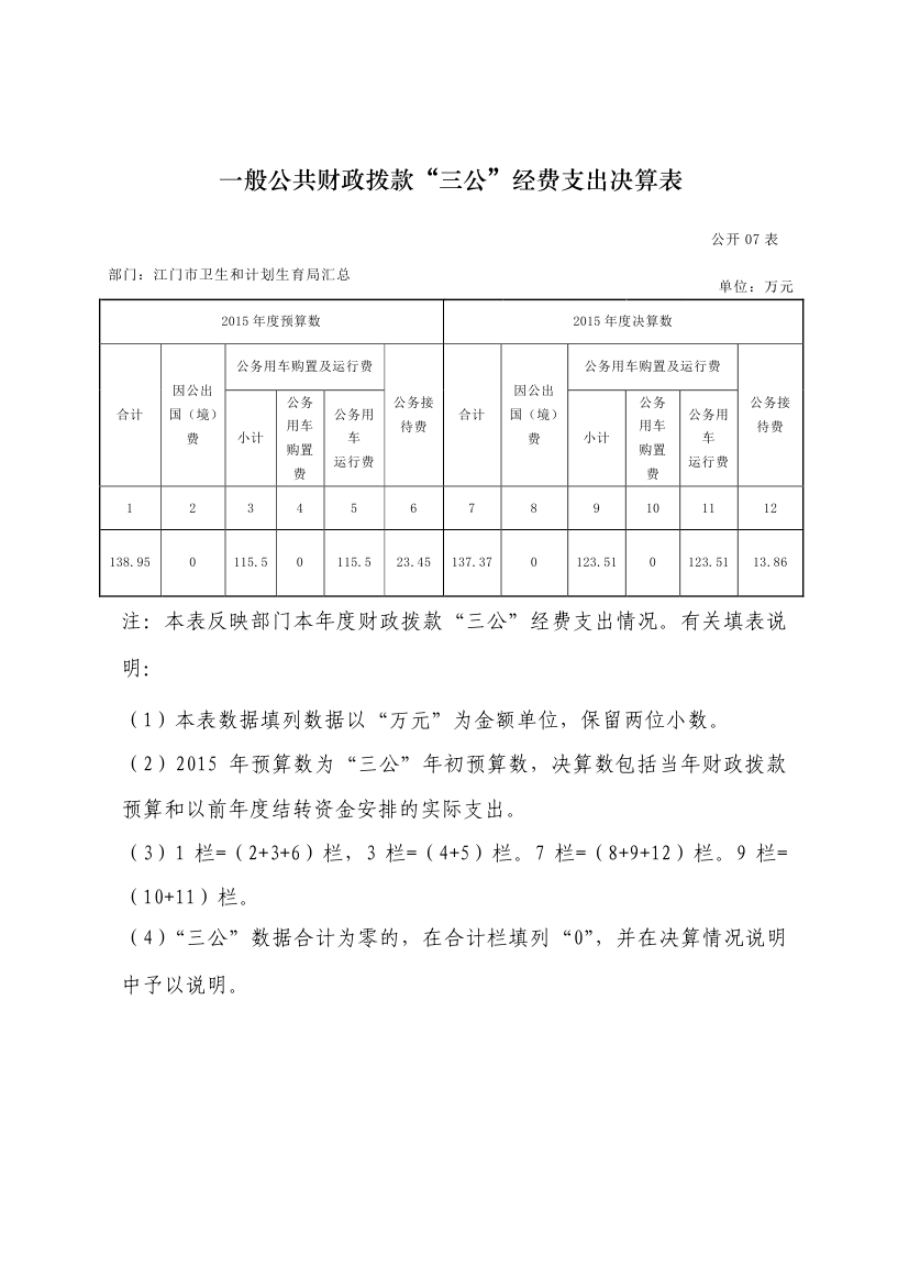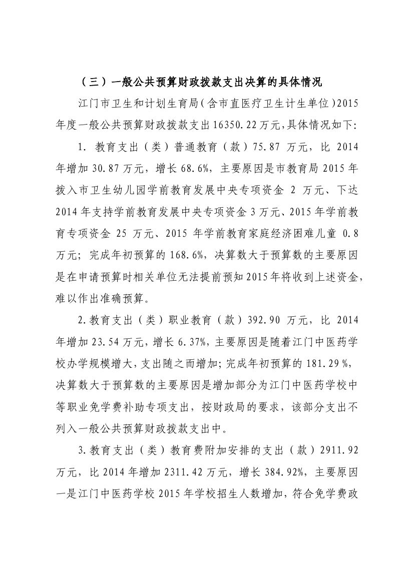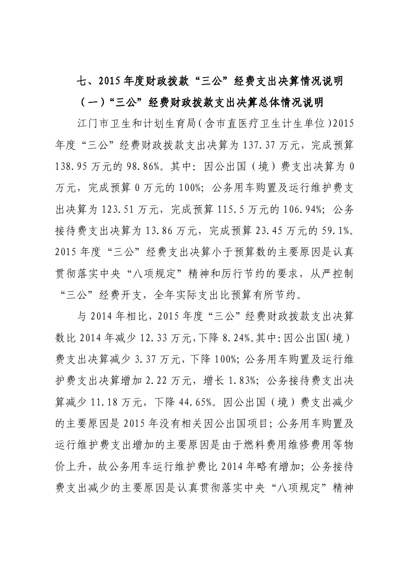 江门市卫生和计划生育局(含市直医疗卫生计生单位)2015年度部门决算公开