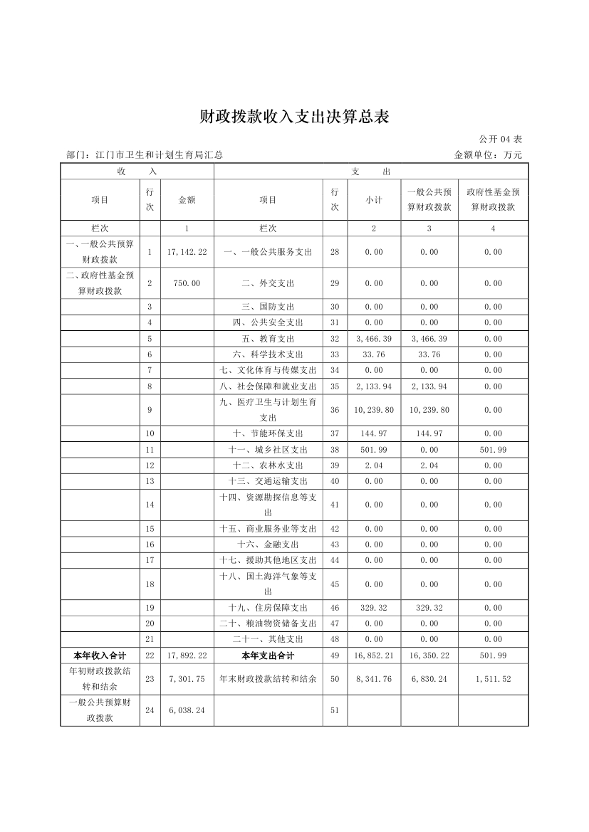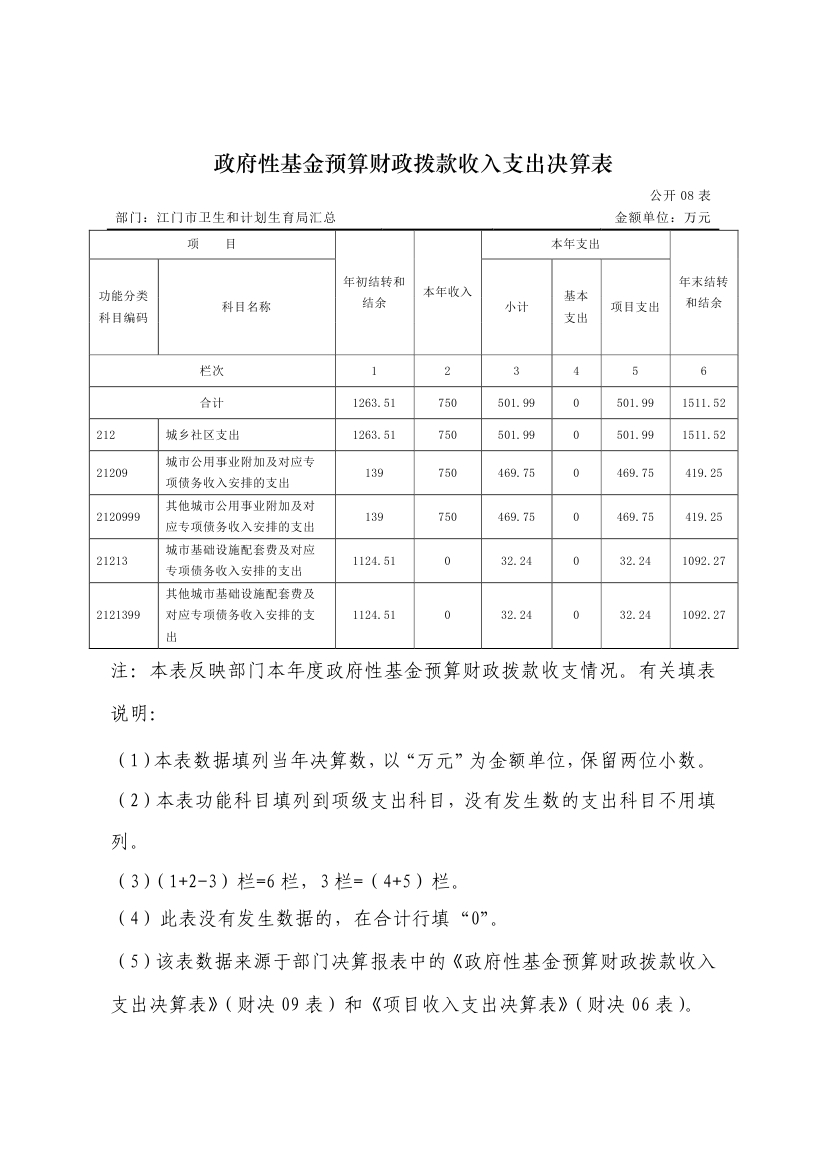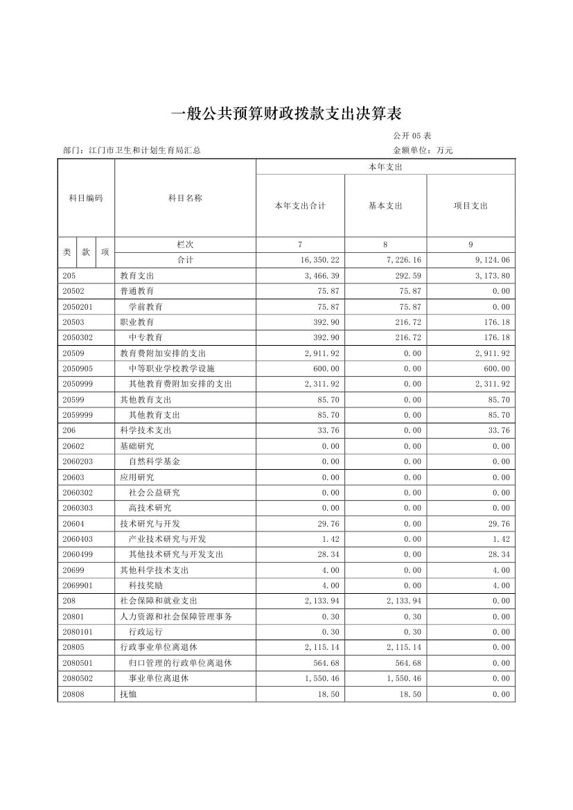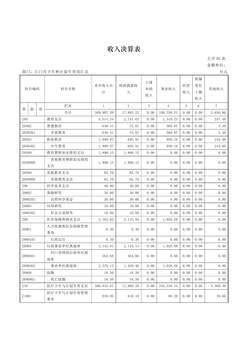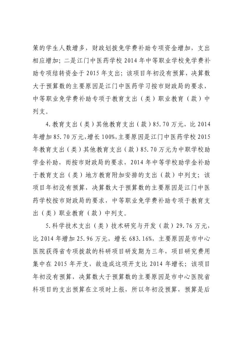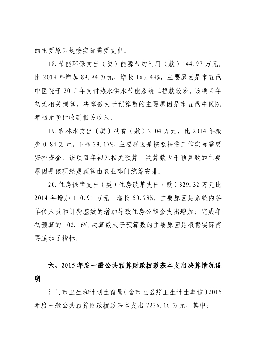 江门市卫生和计划生育局(含市直医疗卫生计生单位)2015年度部门决算公开