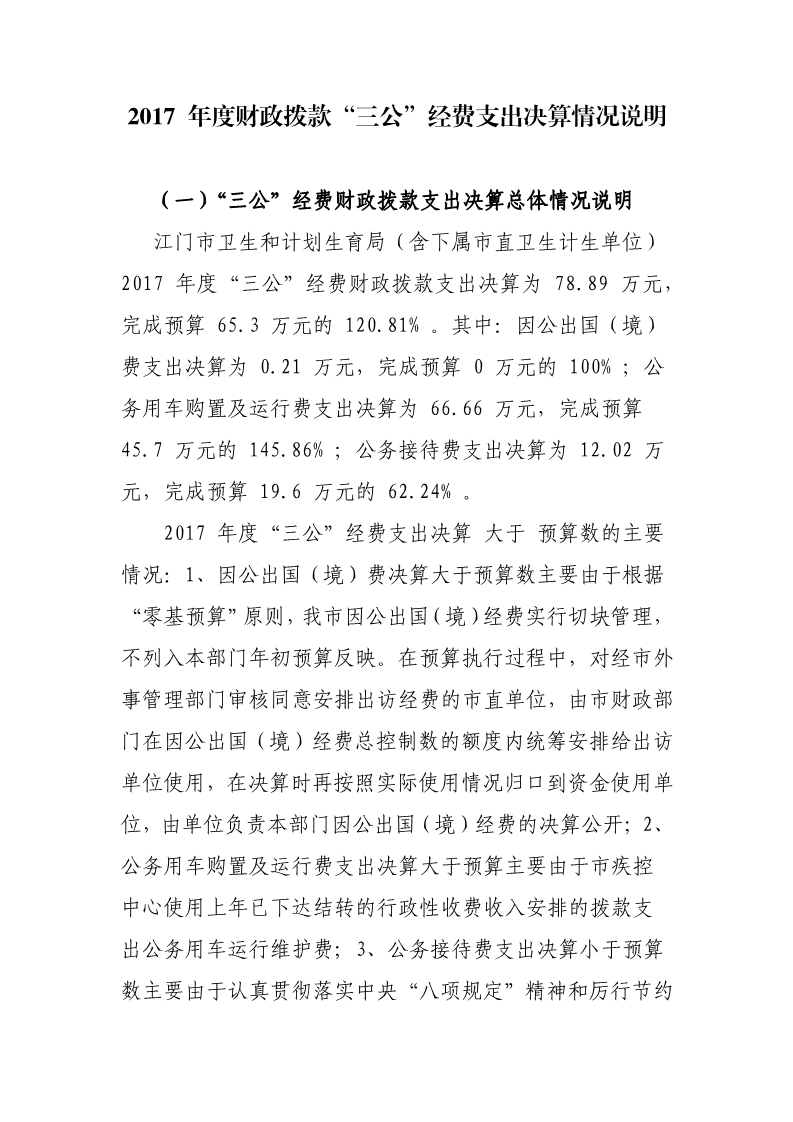 2017 年度财政拨款“三公”经费支出决算情况说明