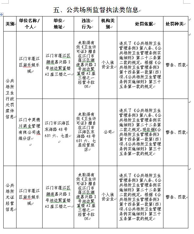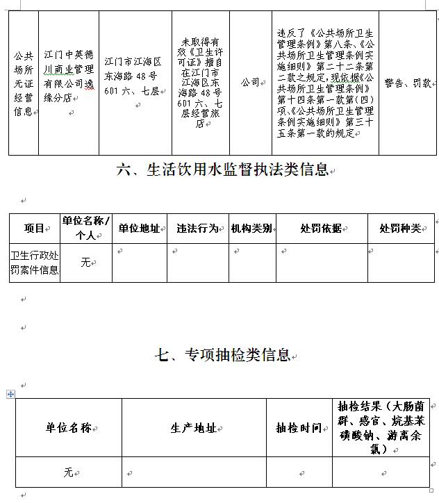 关于2017年2月份江门市区卫生监督信息情况的通告(总第21期)