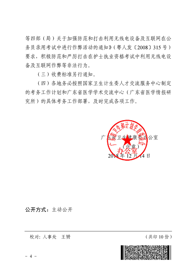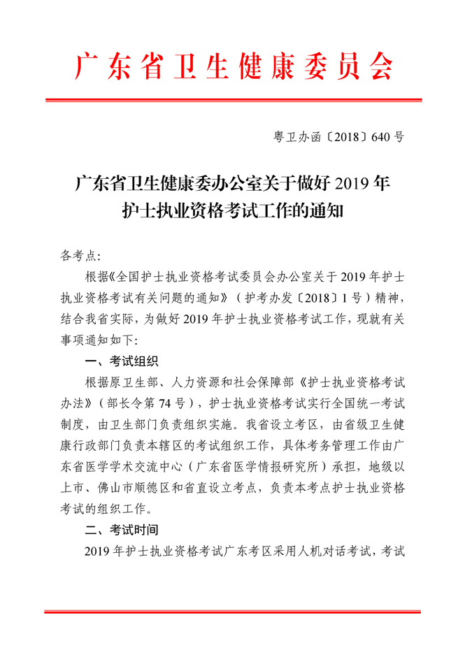 广东省卫生健康委办公室关于做好2019年护士执业资格考试工作的通知(粤卫办函〔2018〕640号)