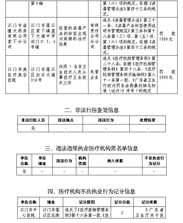 根据《江门市卫生和计划生育局卫生监督信息公示制度(试行)》要求,我局现对2019年1月份有关卫生监督信息进行公示,具体详见附表。