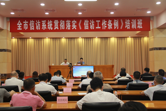 为深入贯彻习近平总书记关于加强和改进人民信访工作的重要思想,进一步提升干部队伍履职能力,依法落实信访工作相关要求,7月20日,我市组织市直有关部门、市(县)两级信访部门、各镇(街)有关负责同志及具体业务经办人员共580余人参加全市信访系统贯彻落实《信访工作条例》培训班,邀请了省信访局调研处处长李居宁同志为大家专题授课。市政府副秘书长、市信访局党组书记、局长陈军凯同志作开班动员讲话。