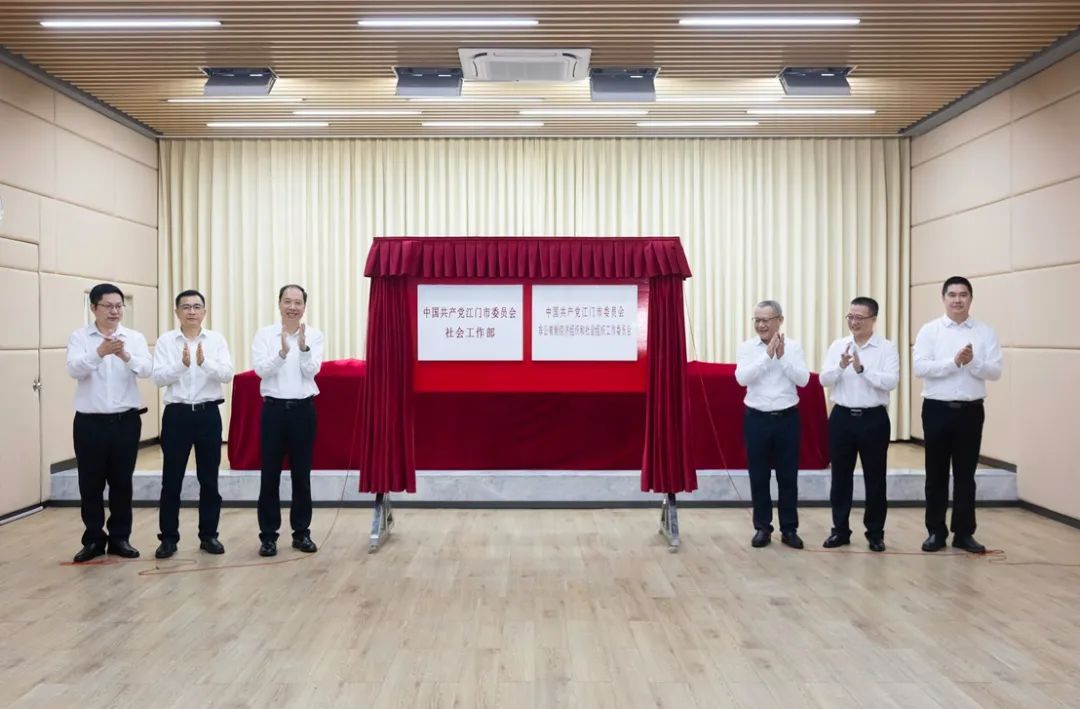 4月22日上午,中共江门市委社会工作部揭牌仪式举行。市委书记陈岸明出席仪式,为“中国共产党江门市委员会社会工作部”和“中国共产党江门市委员会非公有制经济组织和社会组织工作委员会”揭牌。