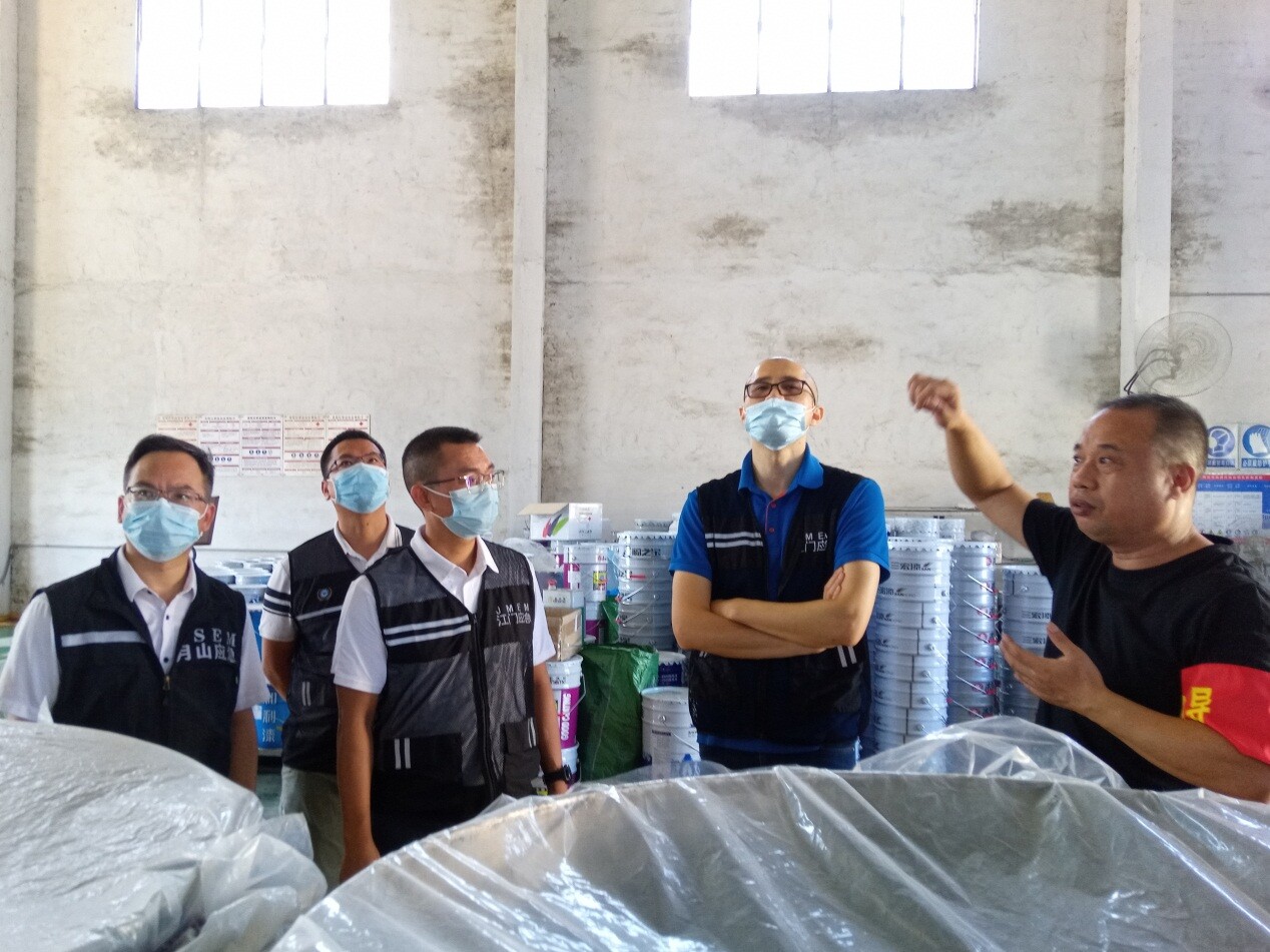7月14日,江门市安委办副主任甄晓汉同志带队到我市月山镇开展化工安全整治督导检查,开平市安委办、月山镇负责同志陪同检查。