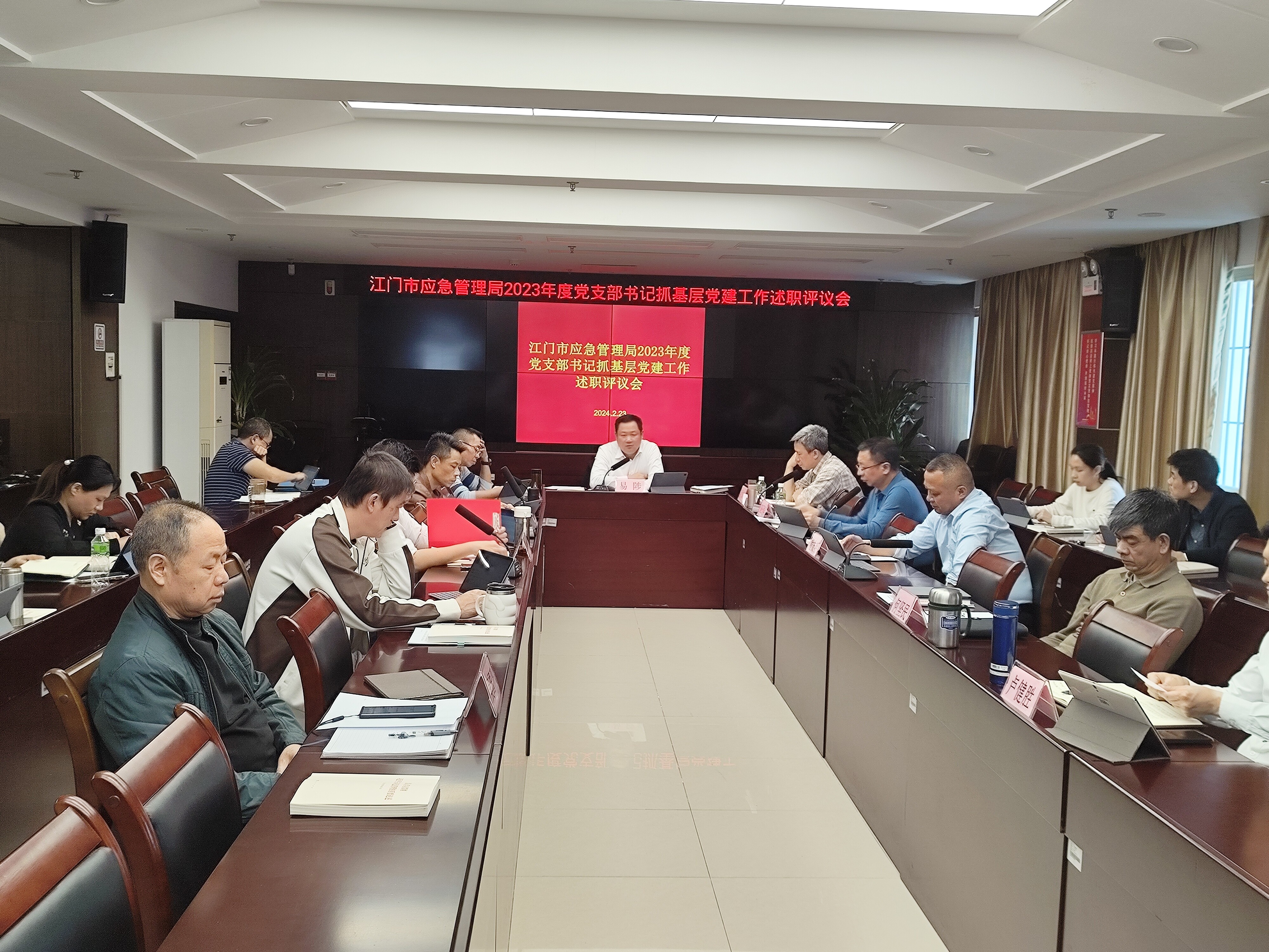 为全面落实新时代党的建设总要求,推动全面从严治党向基层延伸,市应急管理局于2月23日上午召开党委(扩大)会议,组织基层党组织书记进行现场述职评议。局副处级以上干部、各科室及直属单位负责同志参加会议。局党委书记、局长易陟现场进行点评,局党委委员、副局长、机关党委书记高正华主持会议。