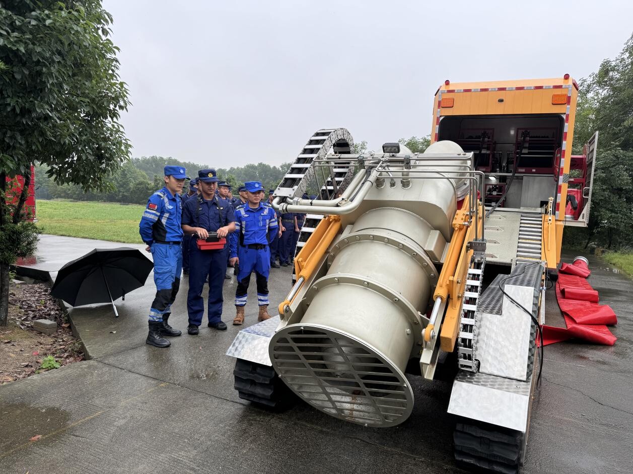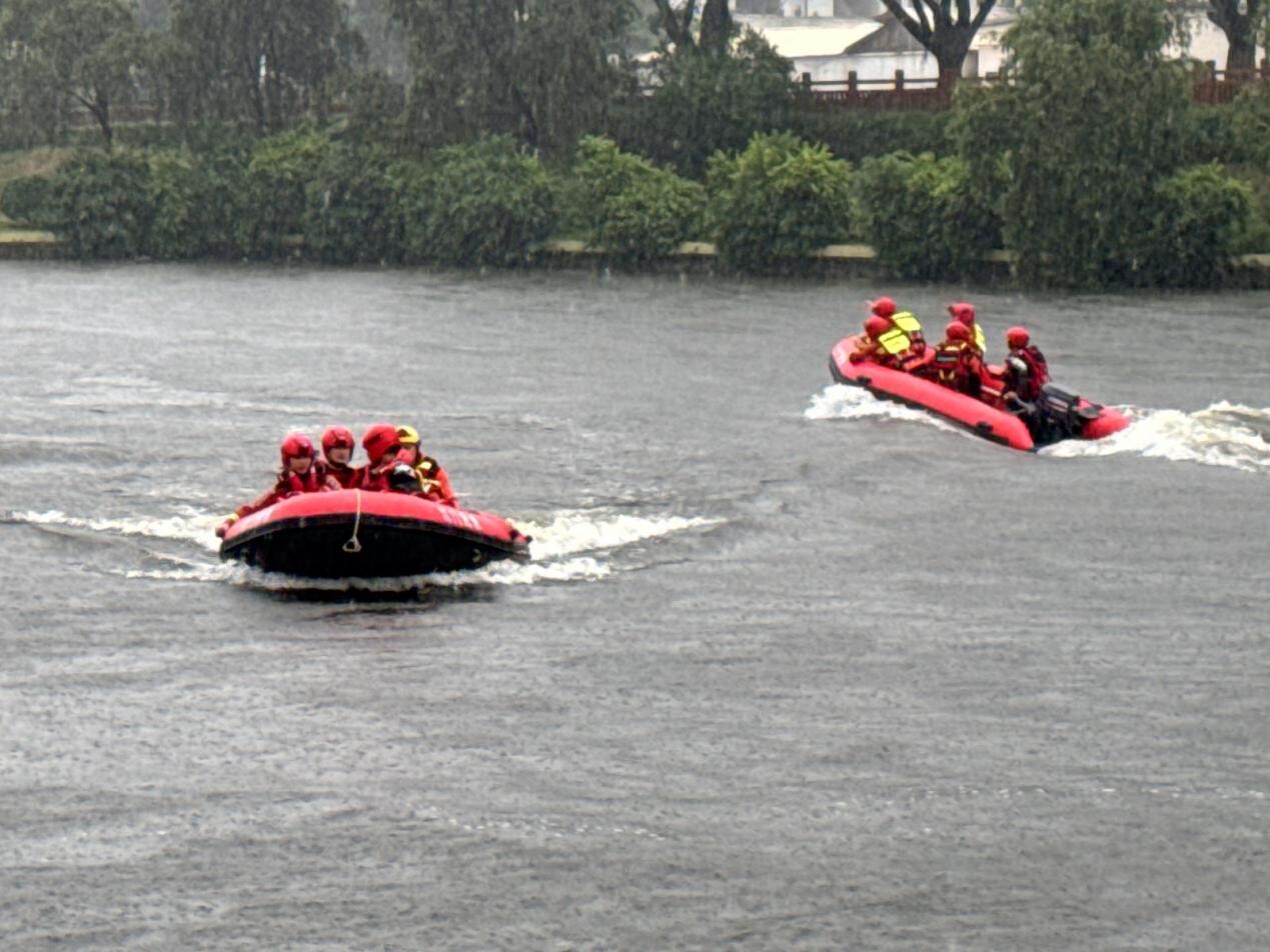 本次专项训练以提升救援支队整体实战能力为训练目标,参训人员首先学习水域救援技术、城市内涝抢险救援组织与实施等相关理论知识,随后模拟真实救援场景,在雨中开展营救落水人员、翻船自救互救、橡皮艇水上操纵、水上飞翼和抛投器操作使用、车(泵)排涝抢险等救援科目实操训练。