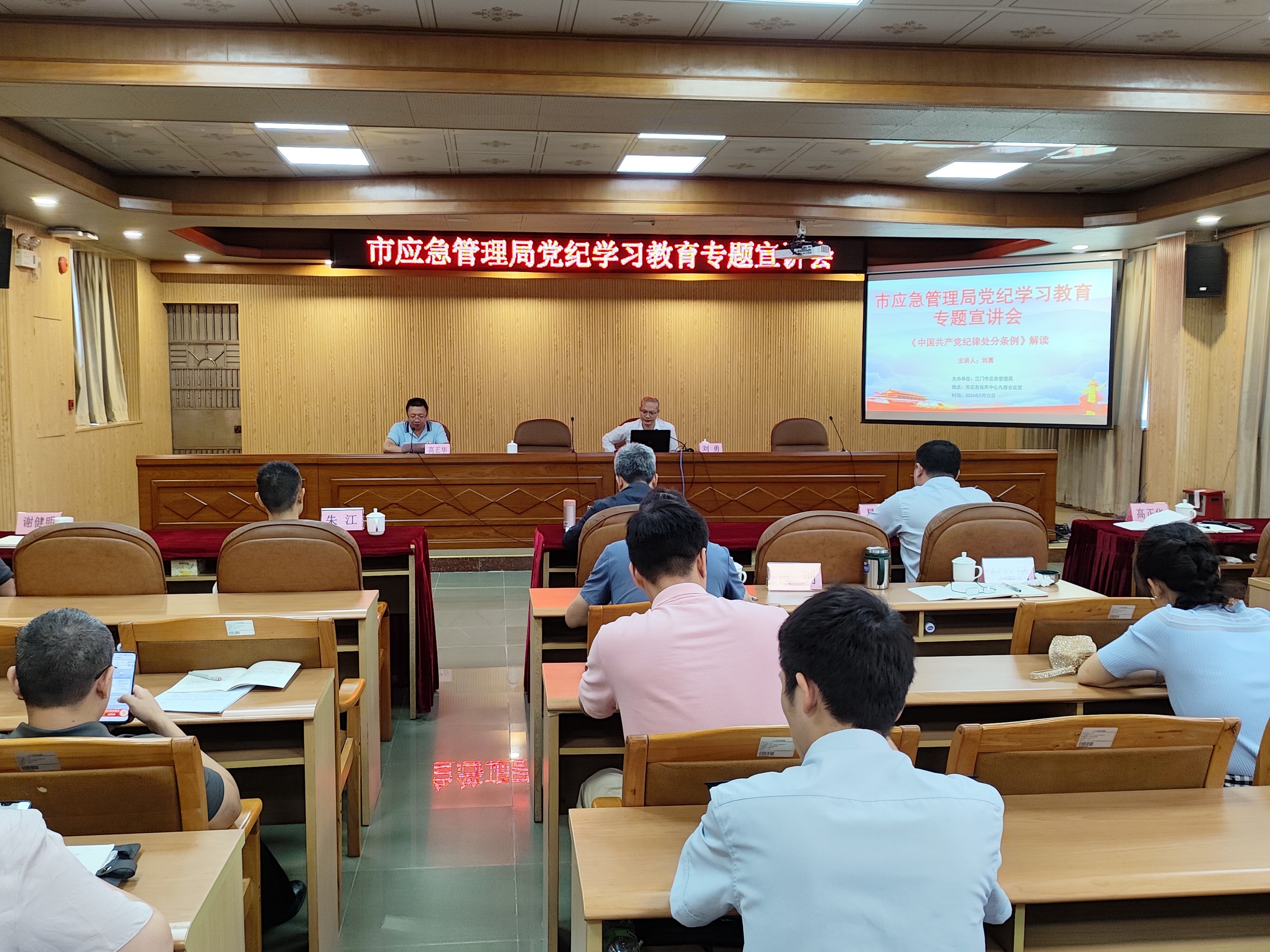 5月22日上午,市应急管理局举办党纪学习教育专题宣讲会,邀请市委党校刘勇副教授作《条例》专题辅导。