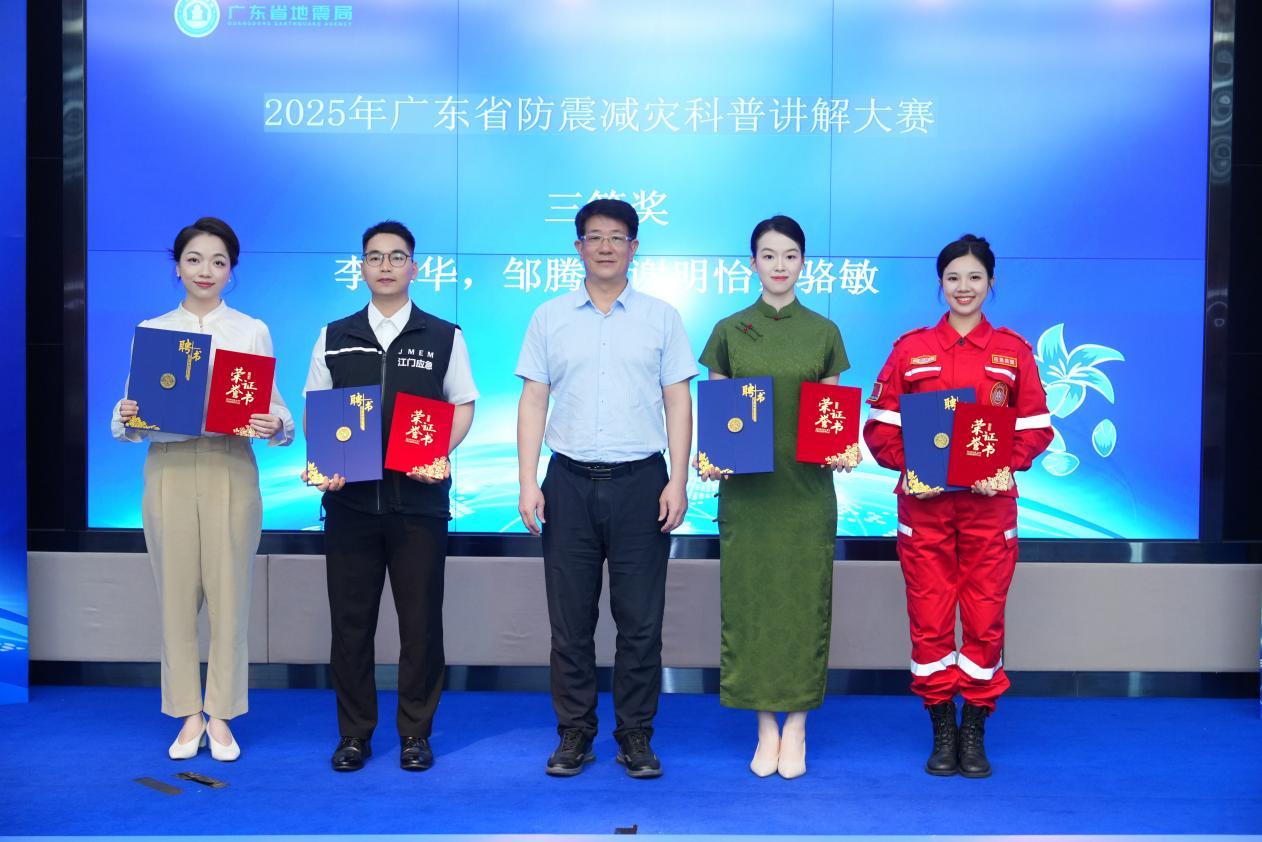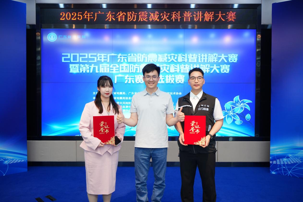 近日,2025年广东省防震减灾科普讲解大赛在广州圆满落幕。在全省21个地级市、47名选手的激烈角逐中,江门市代表队以“专业+创新”双引擎强势突围:江门市应急管理局斩获“优秀组织奖”(全省前8名),江门市地震监测中心李卓华选手以91.9分勇夺个人三等奖(全省前6名),叶文冲选手以89分(全省第18名)获得优秀奖!