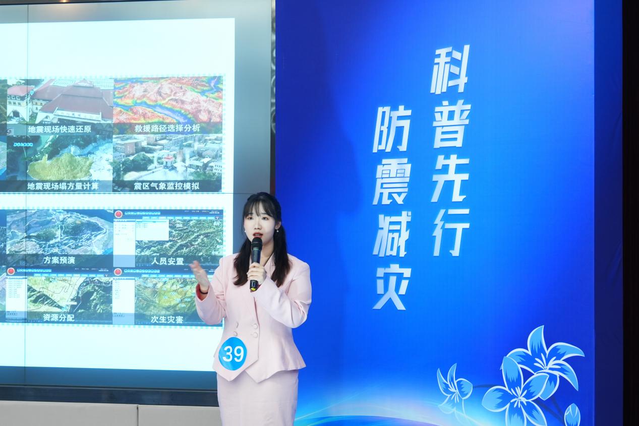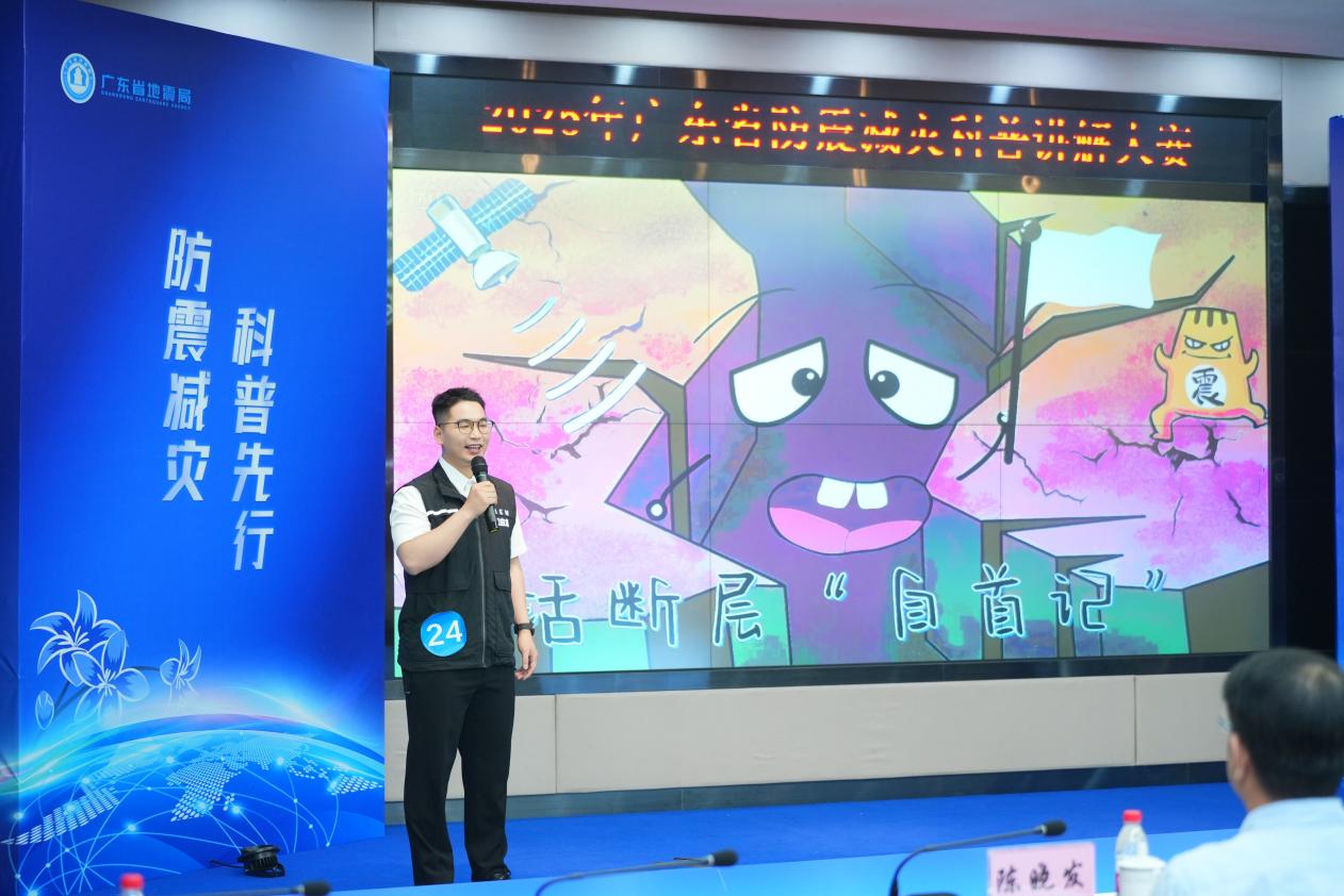 赛场上,李卓华选手以《活断层“自首记”》为题,以自制动画的方式带领观众生动直观地了解活断层的地震科普知识。短短4分钟的演讲,他以生动幽默的语言融合了活断层的特性、地震孕育原理以及最新科学技术对活断层的监测现状,把专业晦涩的科学知识变成了通俗易懂的科普故事。他的讲解妙趣横生、深入浅出,赢得评委和观众的一致肯定。叶文冲选手以《数字孪生重构抗震图谱,智能算法点亮生命之光》为题,为评委和观众讲解了数字孪生和人工智能技术在防震减灾领域的应用现状。