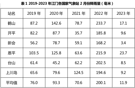 (二)风情:2月热带气旋登陆或影响我市的可能性小。据统计,2019-2023年2月份无台风影响江门。