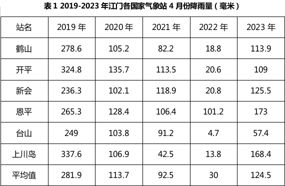 (二)风情:4月热带气旋影响我市的可能性小。据统计,2019-2023年4月份无台风影响江门。