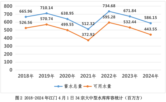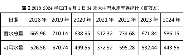 (三)水情:3月份西江来水平均流量4020m3/s,比常年多8%。4月1日,34宗大中型水库蓄水总量586.15百万方,较常年同期少3%,蓄水总量占总正常库容比例为45%,可用水量443.55百万方,占总兴利库容比例为38%;21宗供水水库蓄水总量472.74百万方,较常年同期多23.92百万方,可用水量351.2百万方,占兴利库容比例45%。