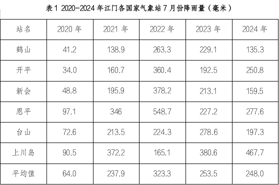 (二)风情:预计,月内可能有1~2个热带气旋影响我市,大致出现在上旬中后期和下旬中后期。据统计,2020-2024年7月份平均0.8个台风影响江门。
