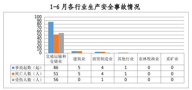 全市共发生生产安全事故96起,其中交通运输和仓储业86起、占90%,建筑业5起、占5%,商贸制造业4起、占4%,其他行业1起、占1%。农林牧渔业和采矿业未发生生产安全事故。