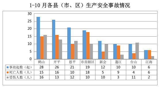 全市发生生产安全事故132起:鹤山28起,开平26起,恩平21起,市直辖区119起,新会12起,蓬江10起,台山10起,江海6起。