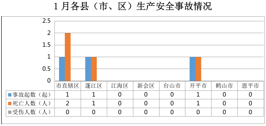 市直辖区1起,蓬江区事故1起,开平市事故1起。其他市(区)无发生生产安全事故。