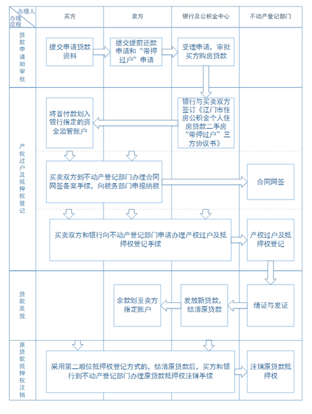 (三)公积金贷款二手房“带押过户”流程图: