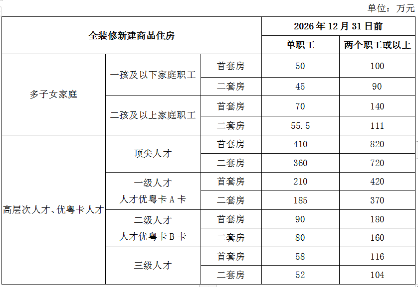 多子女家庭、高层次人才、人才优粤卡、绿色建筑住宅公积金最高贷款额度