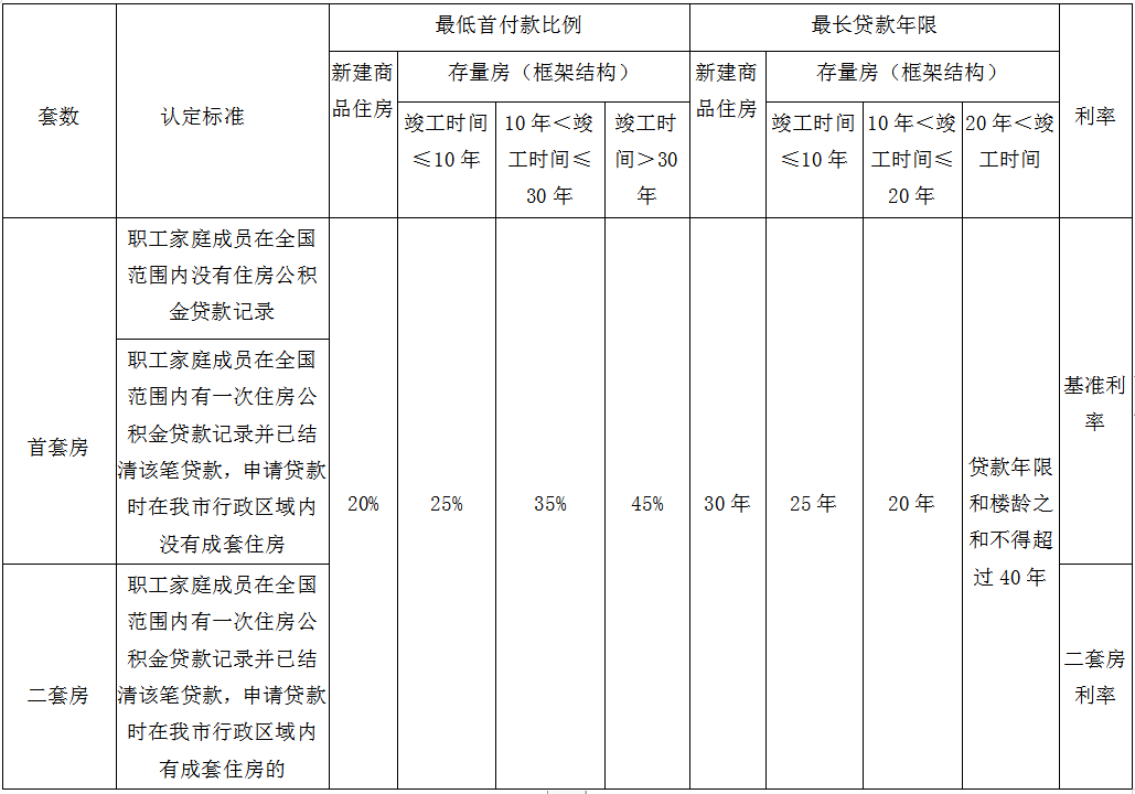 八、公积金贷款的套数认定标准、首付比例、借款年限及利率