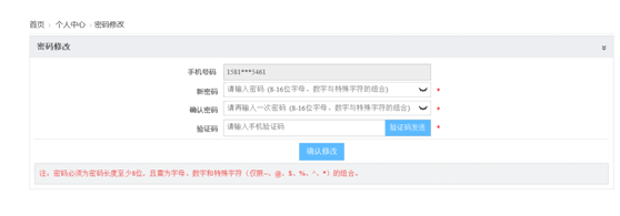 (2) 录入新密码、确认密码、验证码,点击“确认修改”提交。