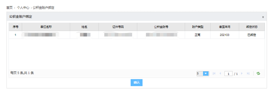 (2) 若只有一个公积金账号,则列表显示已绑定;若存在多个,则可以根据需要进行账号绑定。