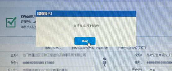 (2)点击【确认】,完成汇缴业务。如支付失败、支付成功未跳转、网络故障无法支付、无合适的支付方式等原因,可以回到首页【支付确认】界面,找到对应的业务进行操作。