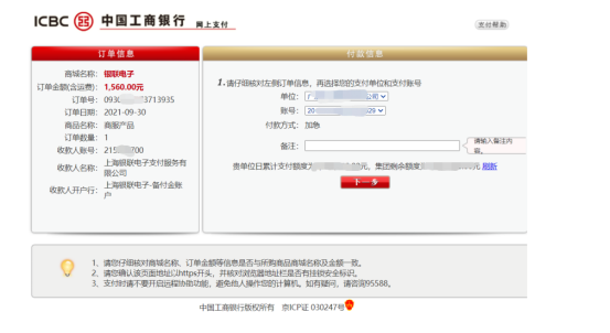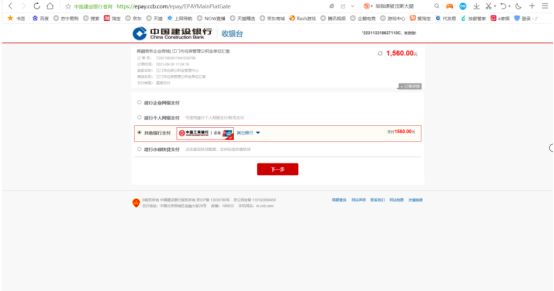 选择工商银行后,点下一步,进入网银支付界面,插入key。
