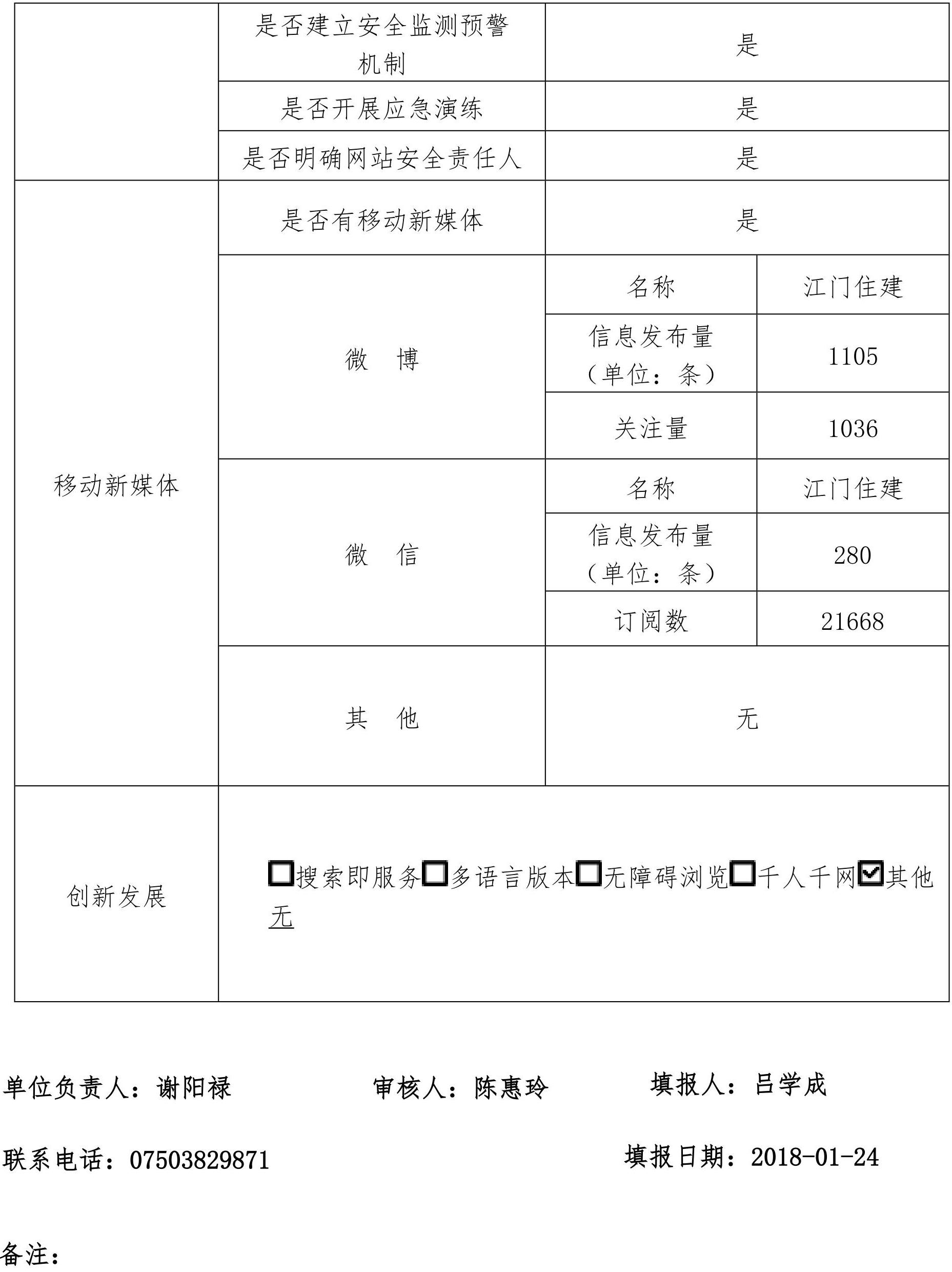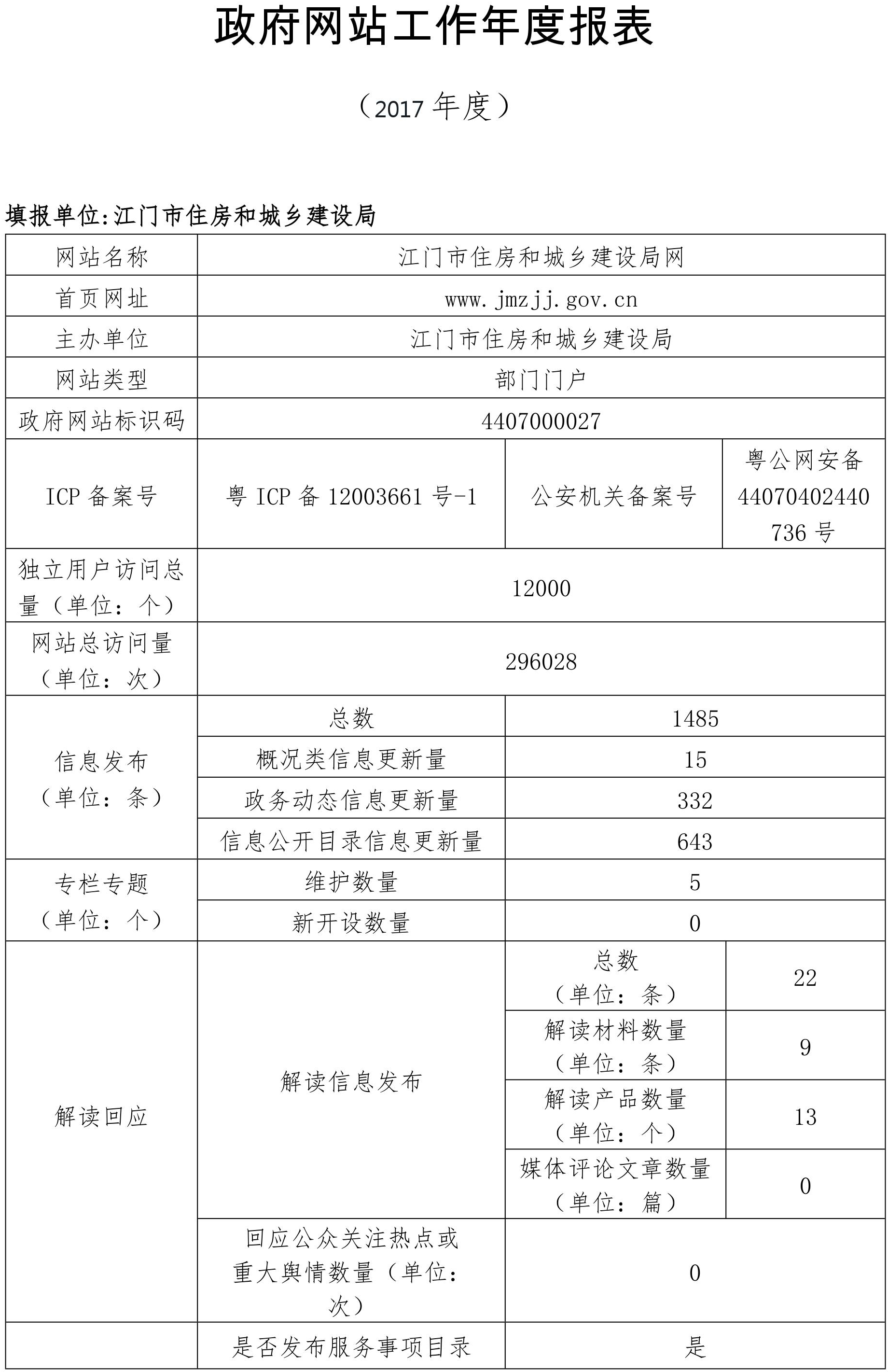 政府网站工作年度报表(2017年度、江门市住房和城乡建设局网)