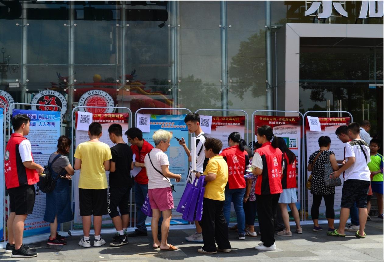 为吸引更多市民的参与,特别设立了国家版图知识有奖问答环节,答对5题以上的市民可以获得江门市地图等奖品,现场气氛活跃,吸引不少市民前来踊跃答题领取地图。