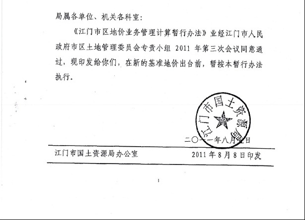 《印发江门市区地价业务管理计算暂行办法的通知》【已废止】