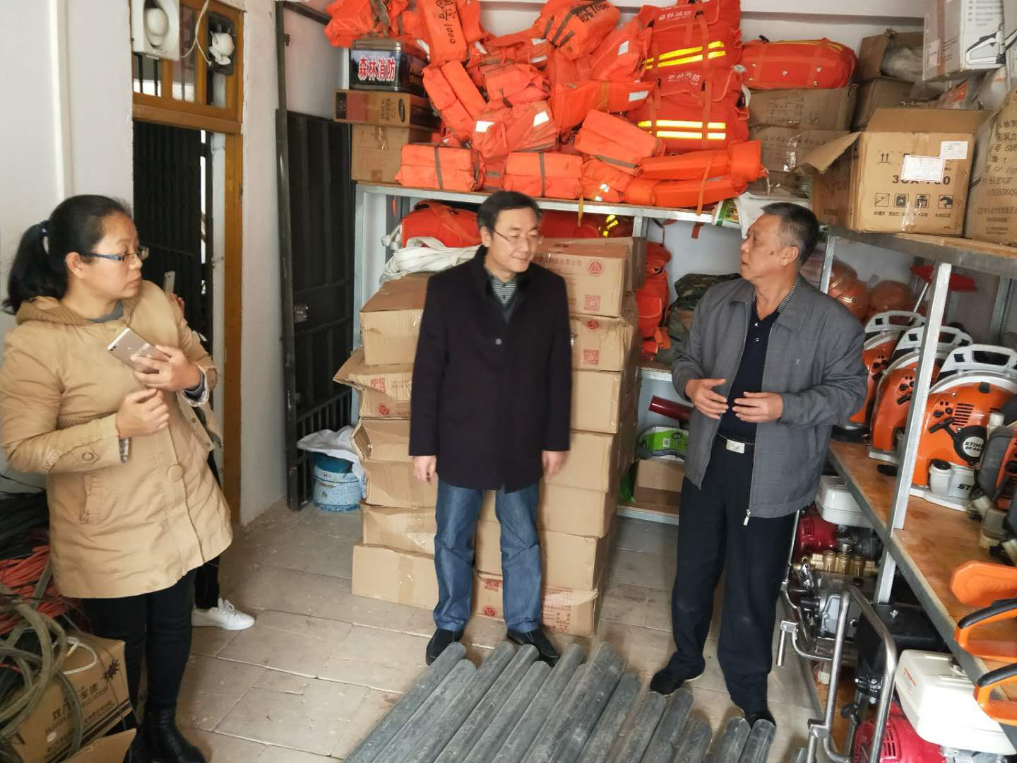 最后,工作组到场部“三防”物资仓库对林场相关设备、物资储备情况等进行检查。