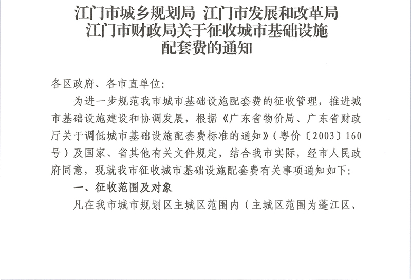 关于征收城市基础设施配套费的通知【失效】