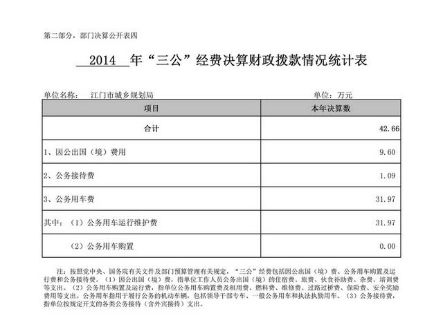 2014年江门市城乡规划局三公经费决算表