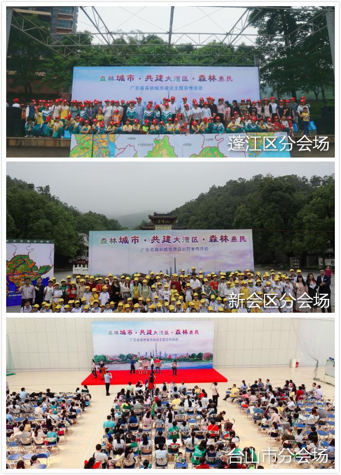 蓬江区:宣传活动在潮连全民健身文化广场举行,50户亲子家庭开展共绘粤港澳大湾区森林资源分布图活动,向学生们以及市民群众派发森林城市建设、扫黑除恶、野生动植物保护等宣传资料200份,绿植250盆。