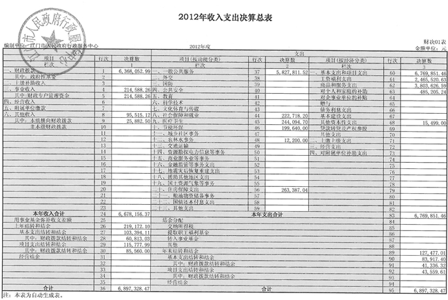江门市行政服务中心2012年收入支出决算总表