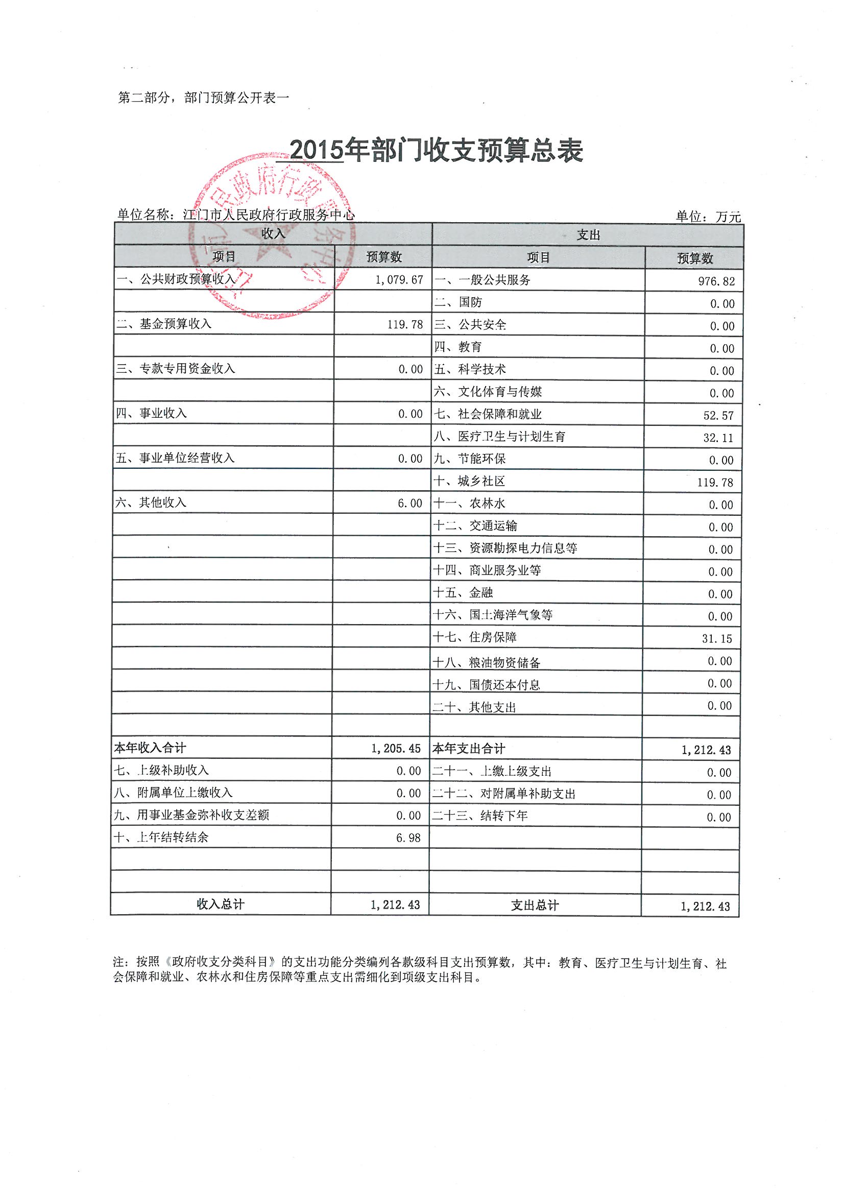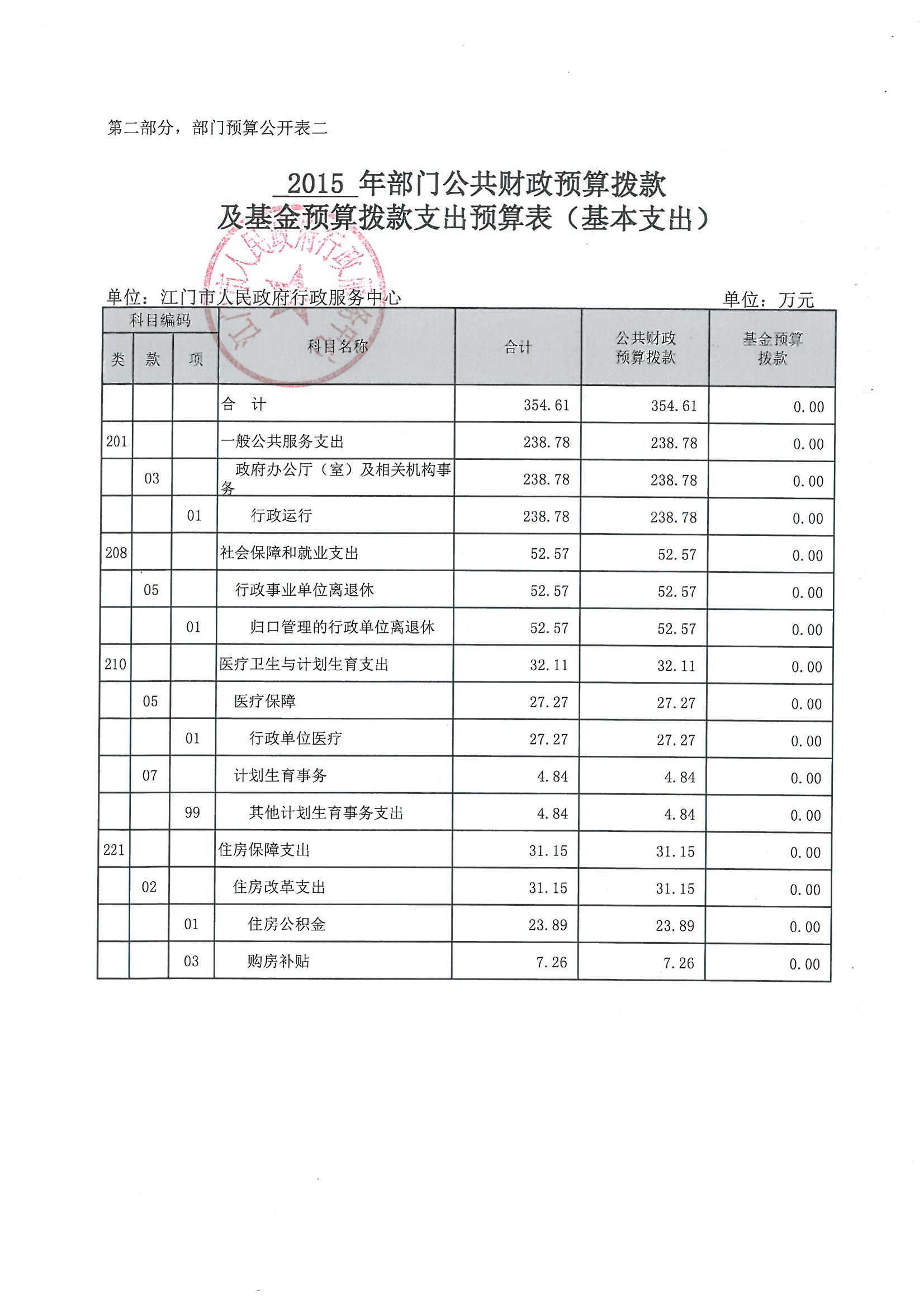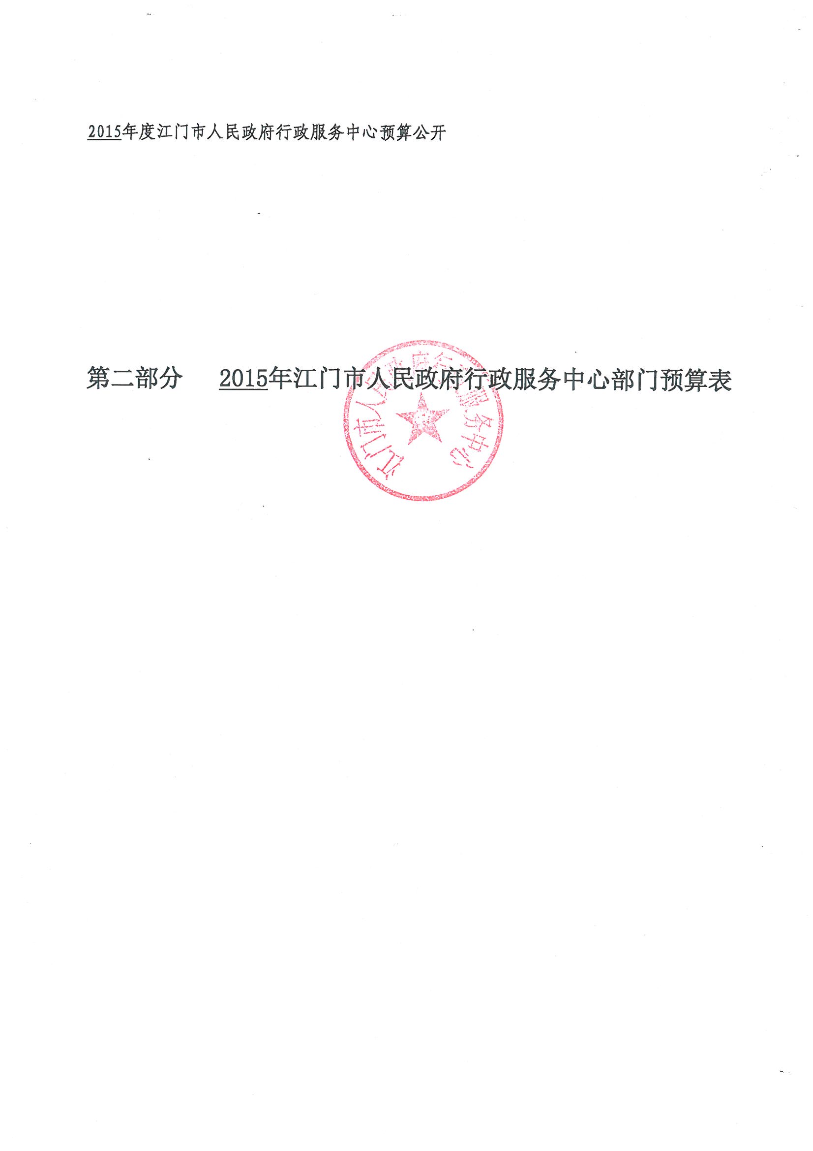 第一部分 2015年江门市人民政府行政服务中心预算