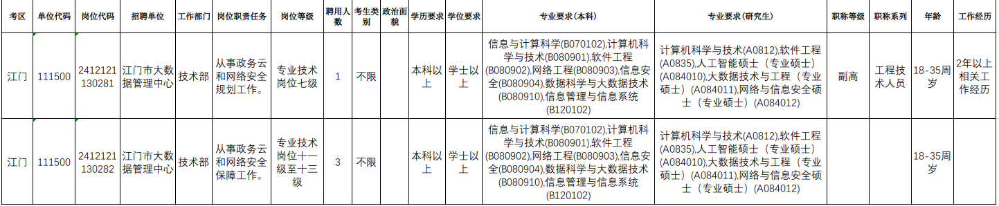 @广大青年学子:《广东省事业单位2024年集中公开招聘高校毕业生公告》已正式发布,江门市大数据管理中心招聘4名职员,期待您的报名。